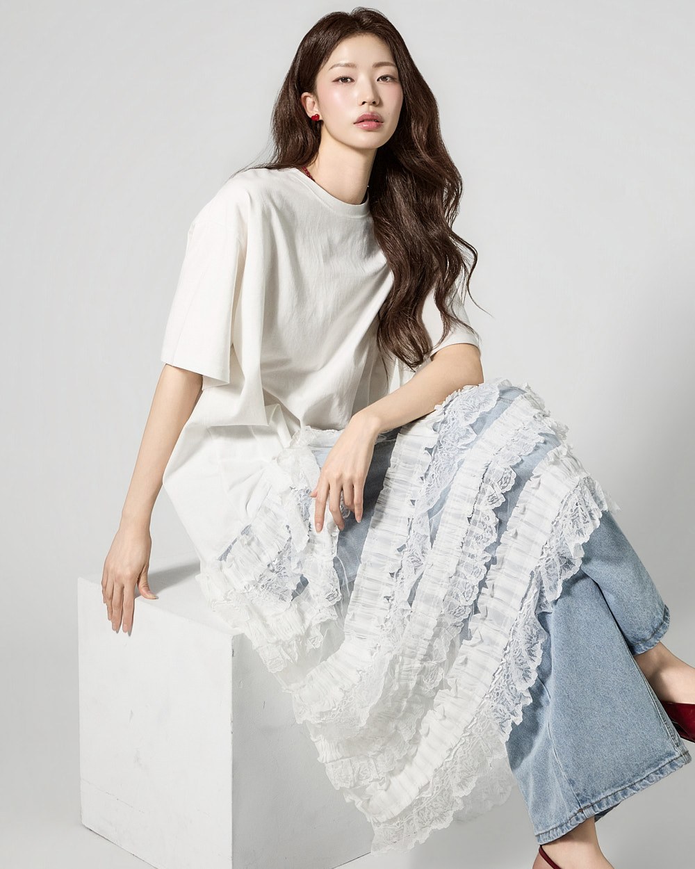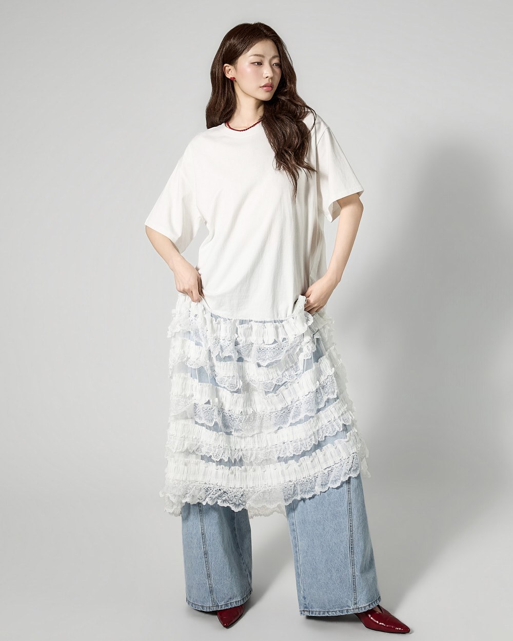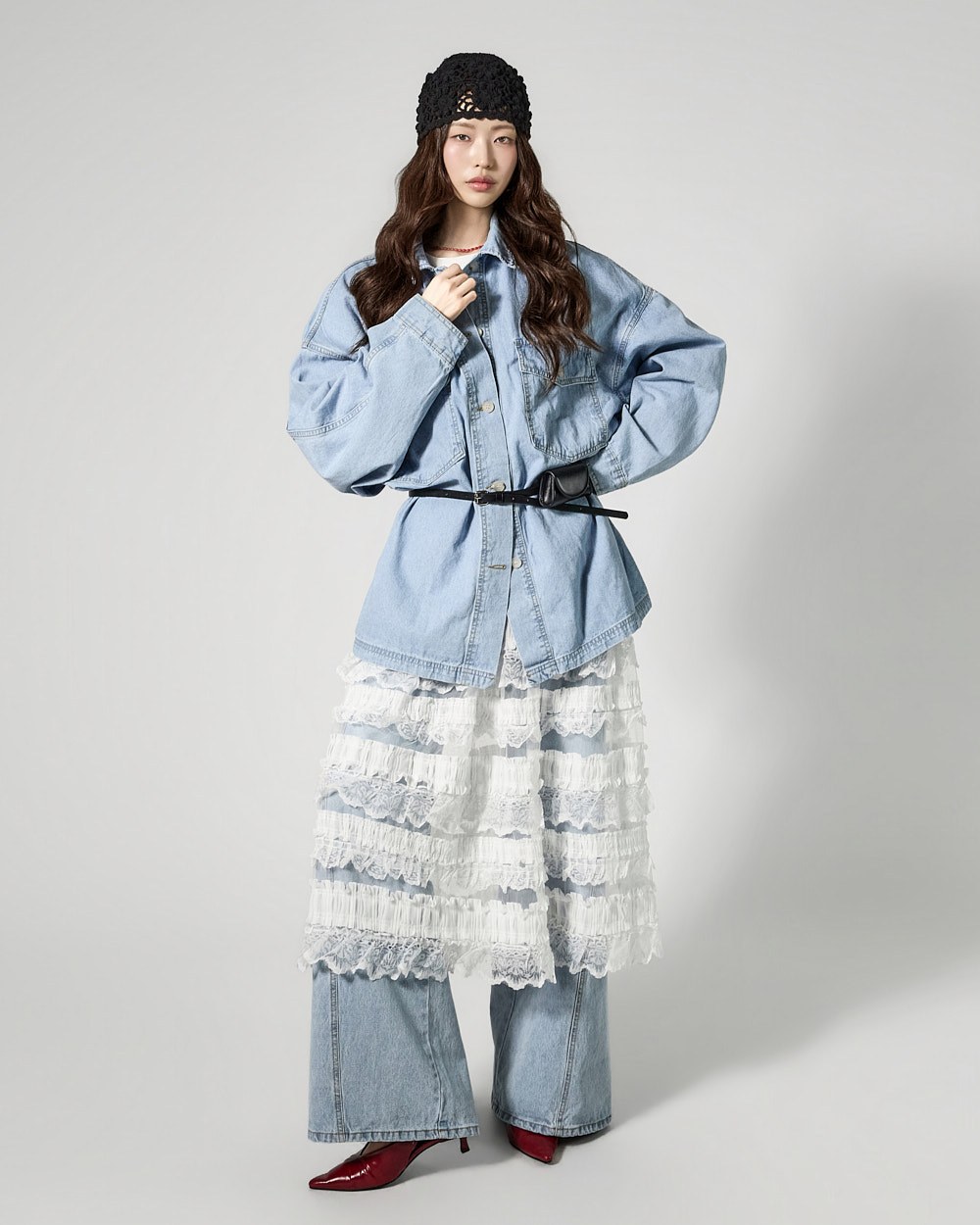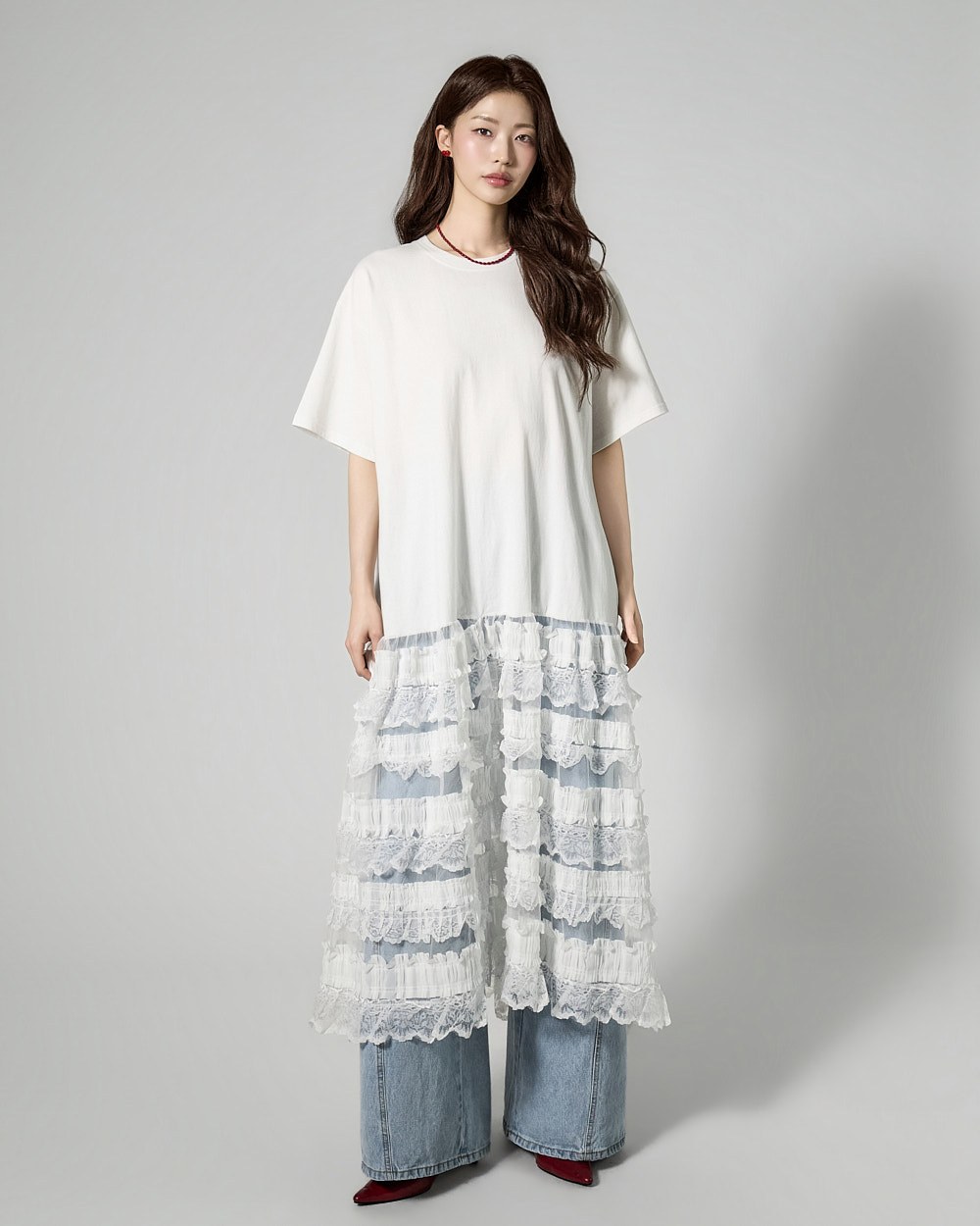 밑단에 더해진 레이스 디테일이 포인트가 되어