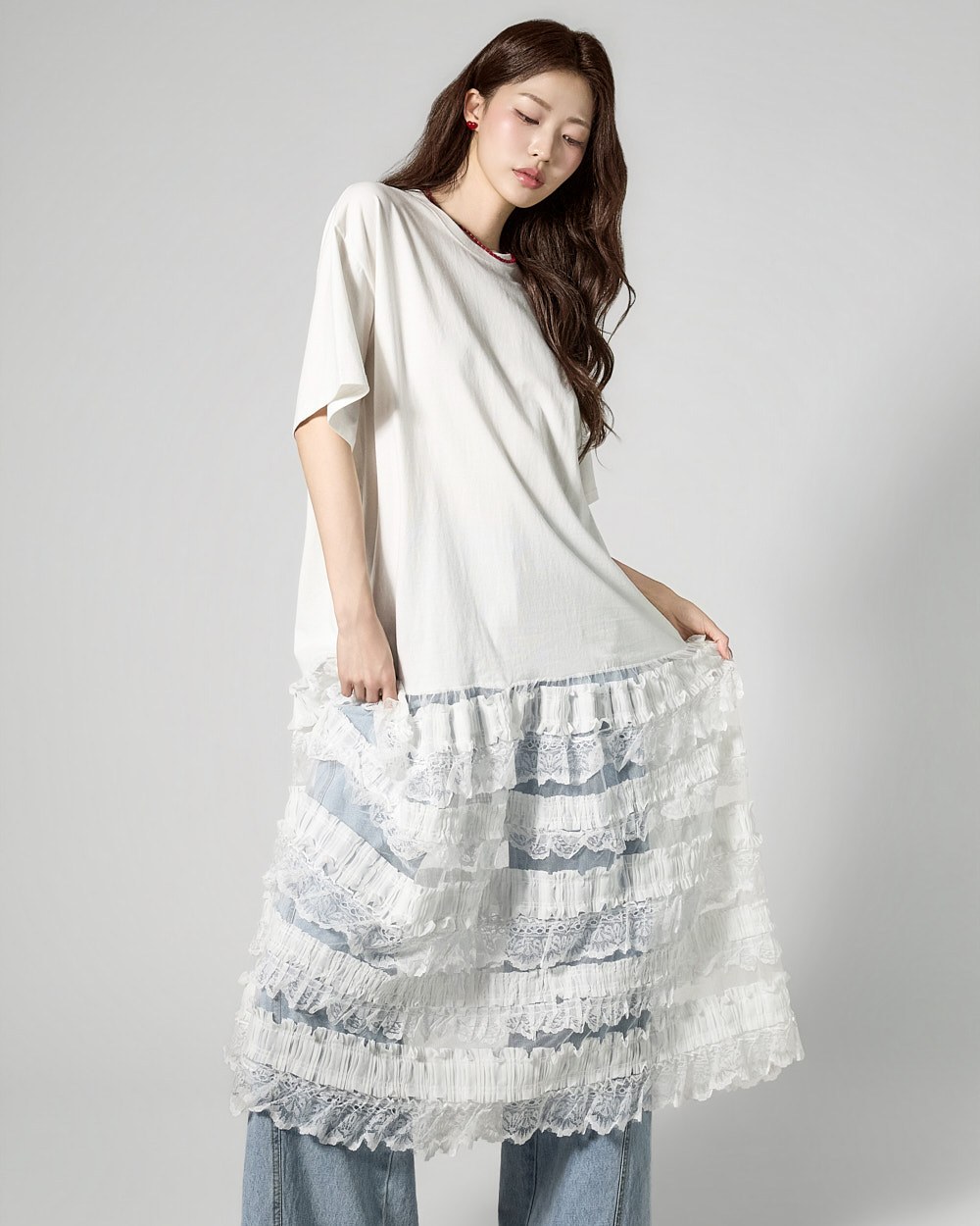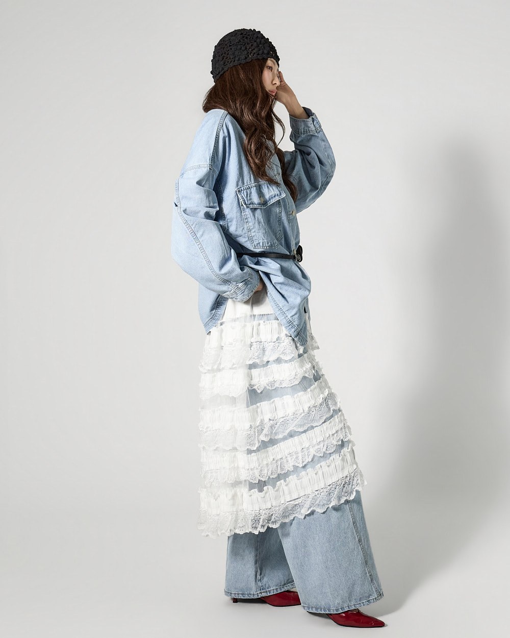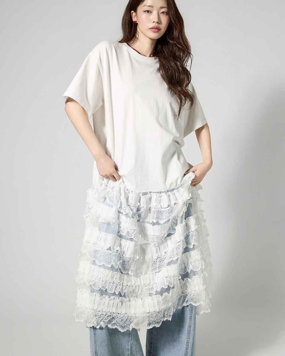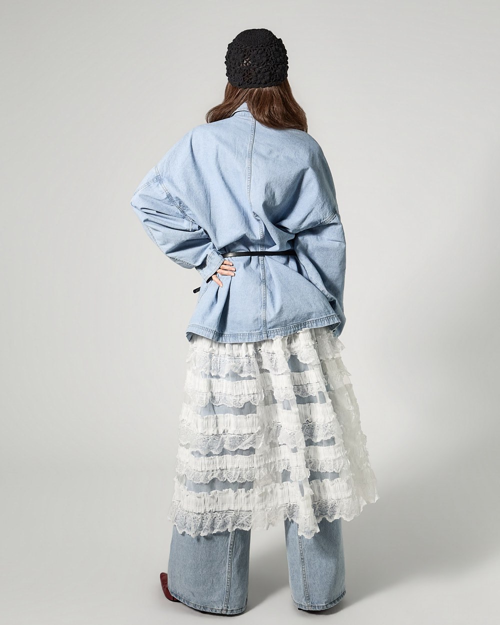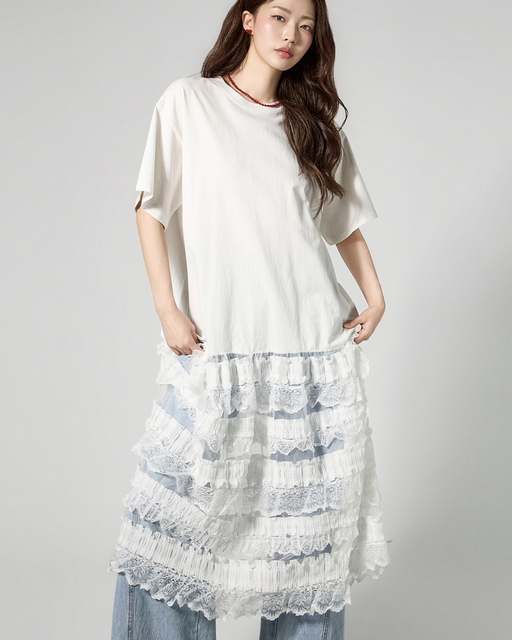 밑단에 더해진 레이스 디테일이 포인트가 되어