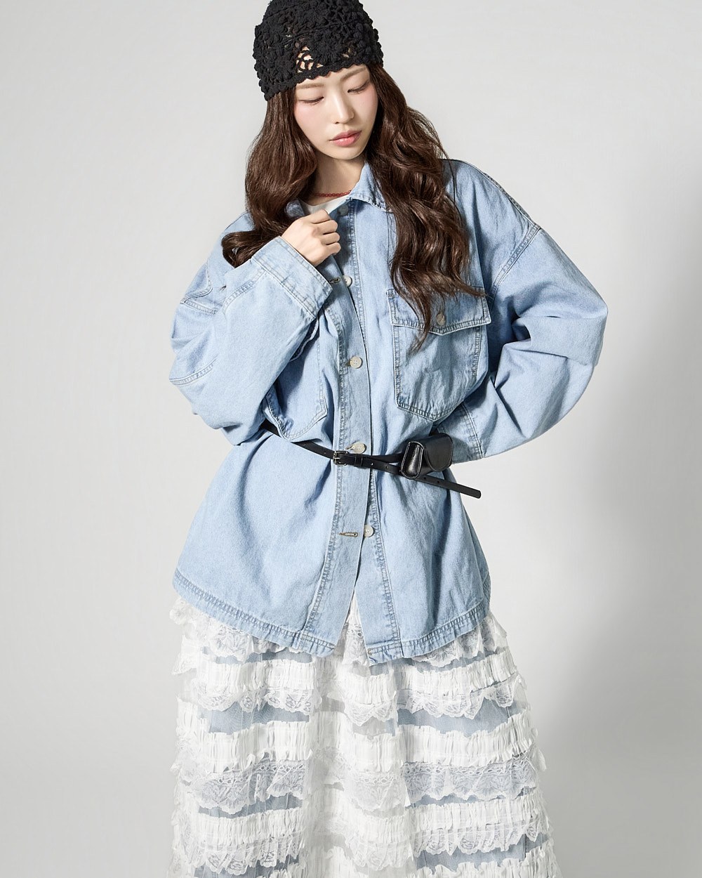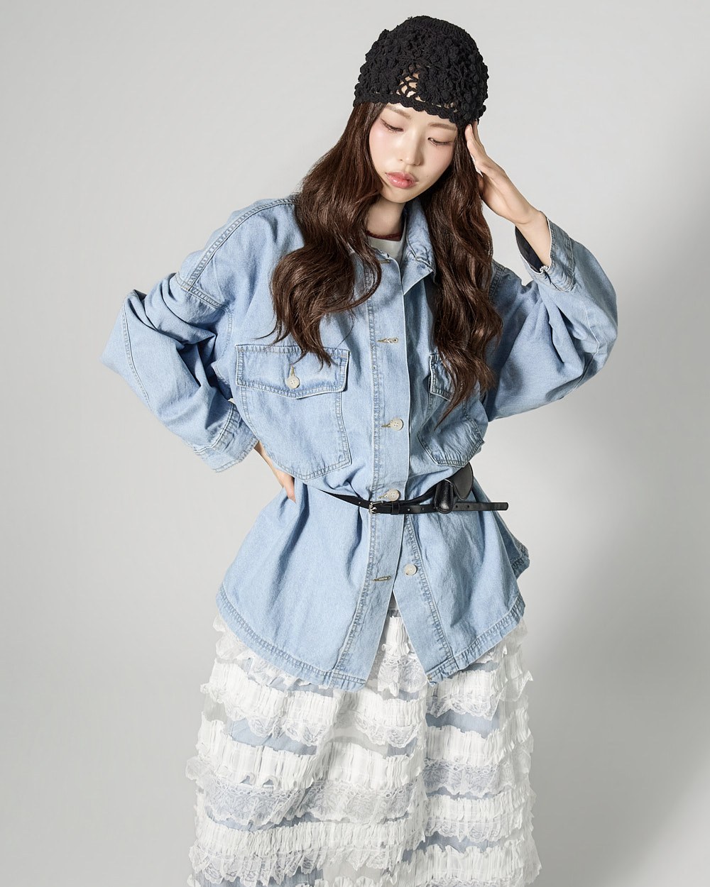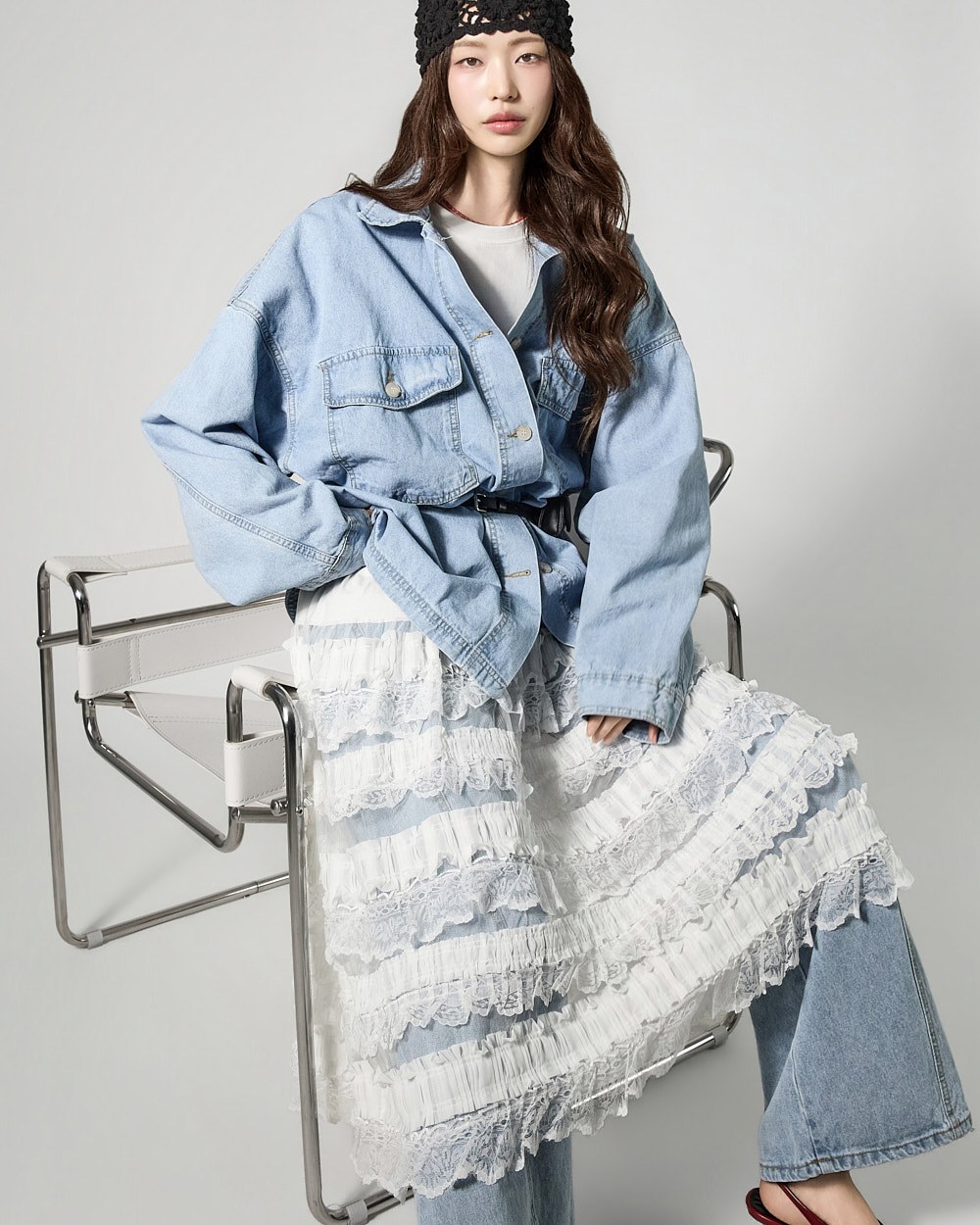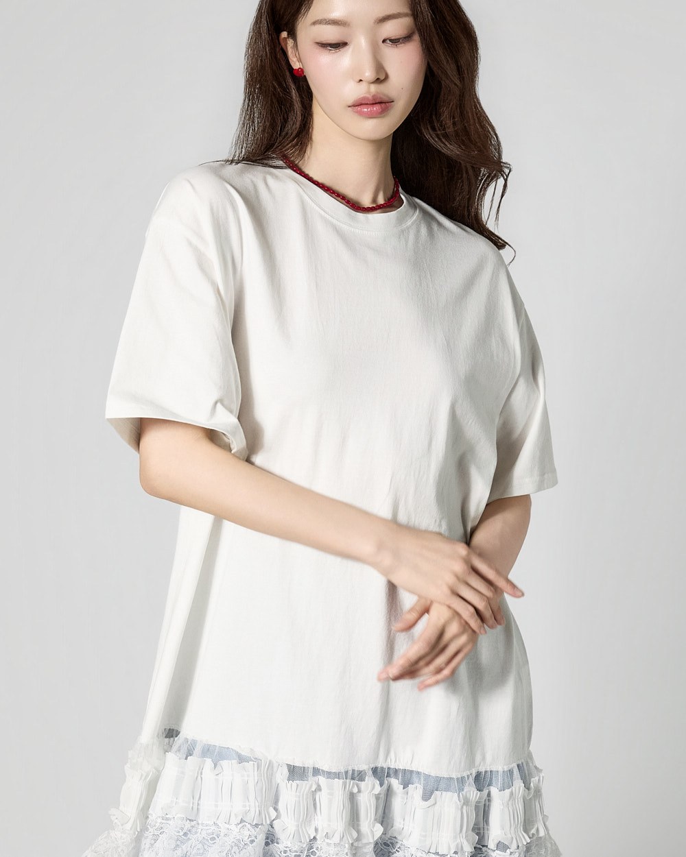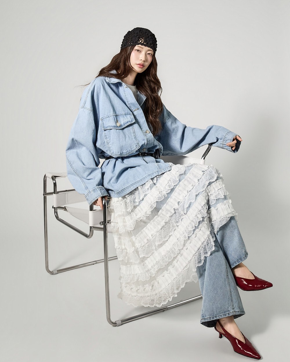 밑단에 더해진 레이스 디테일이 포인트가 되어
