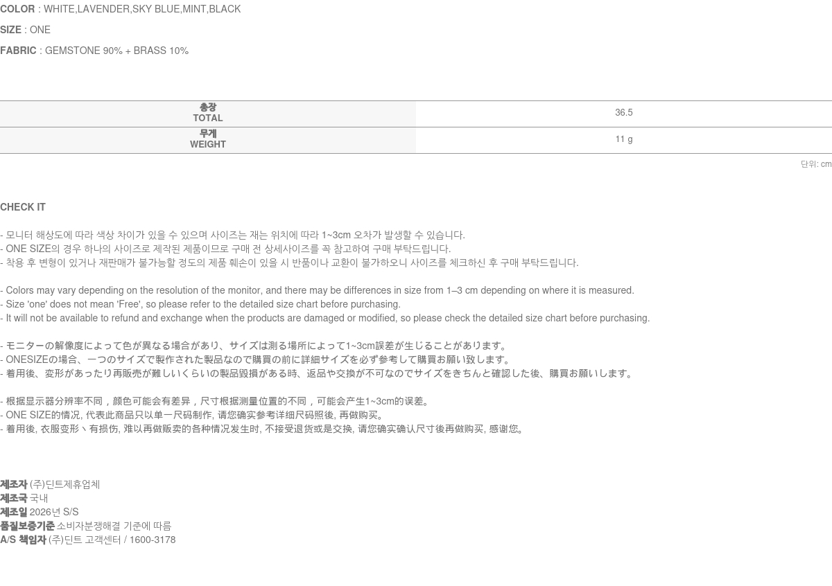 • 액세서리 및 잡화는 장시간 보관 및 착용 시 변색이나 변형이 될 수 있습니다.