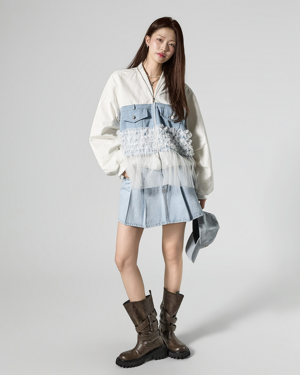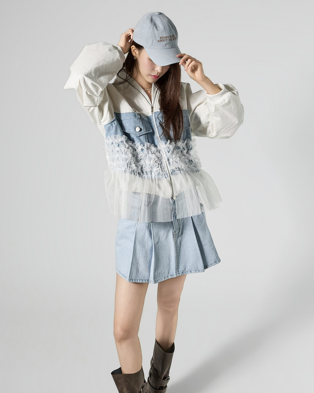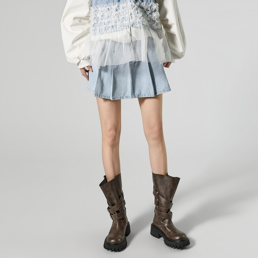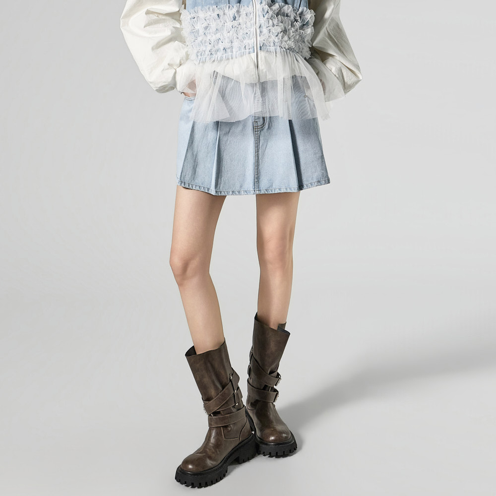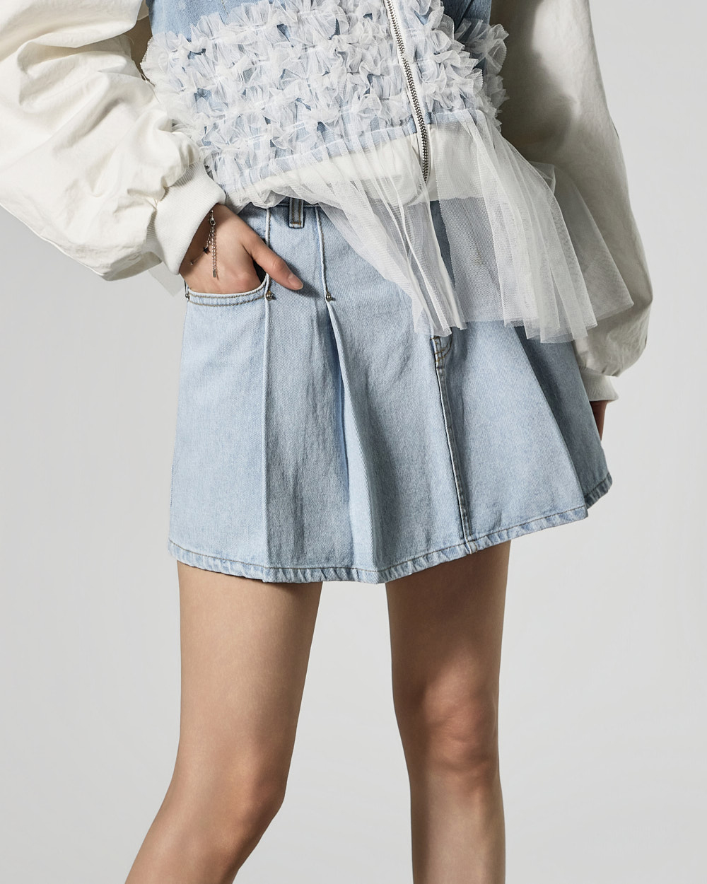 러블리한 무드의 데님 플리츠 스커트입니다.