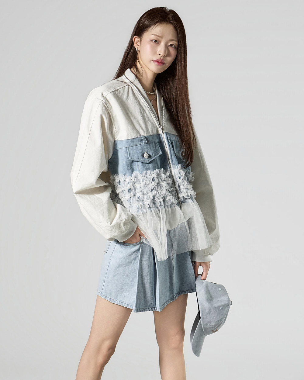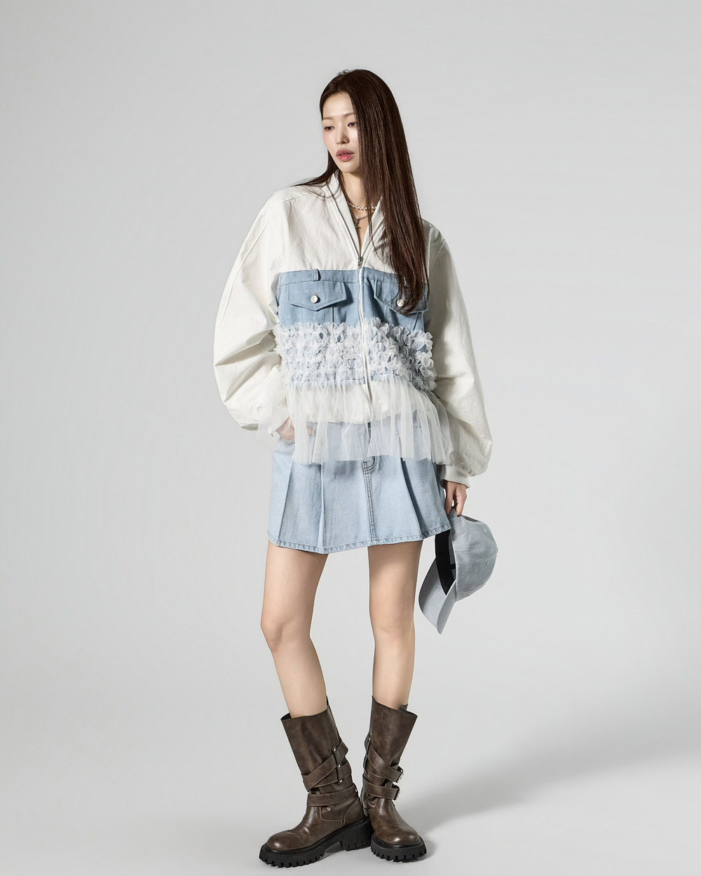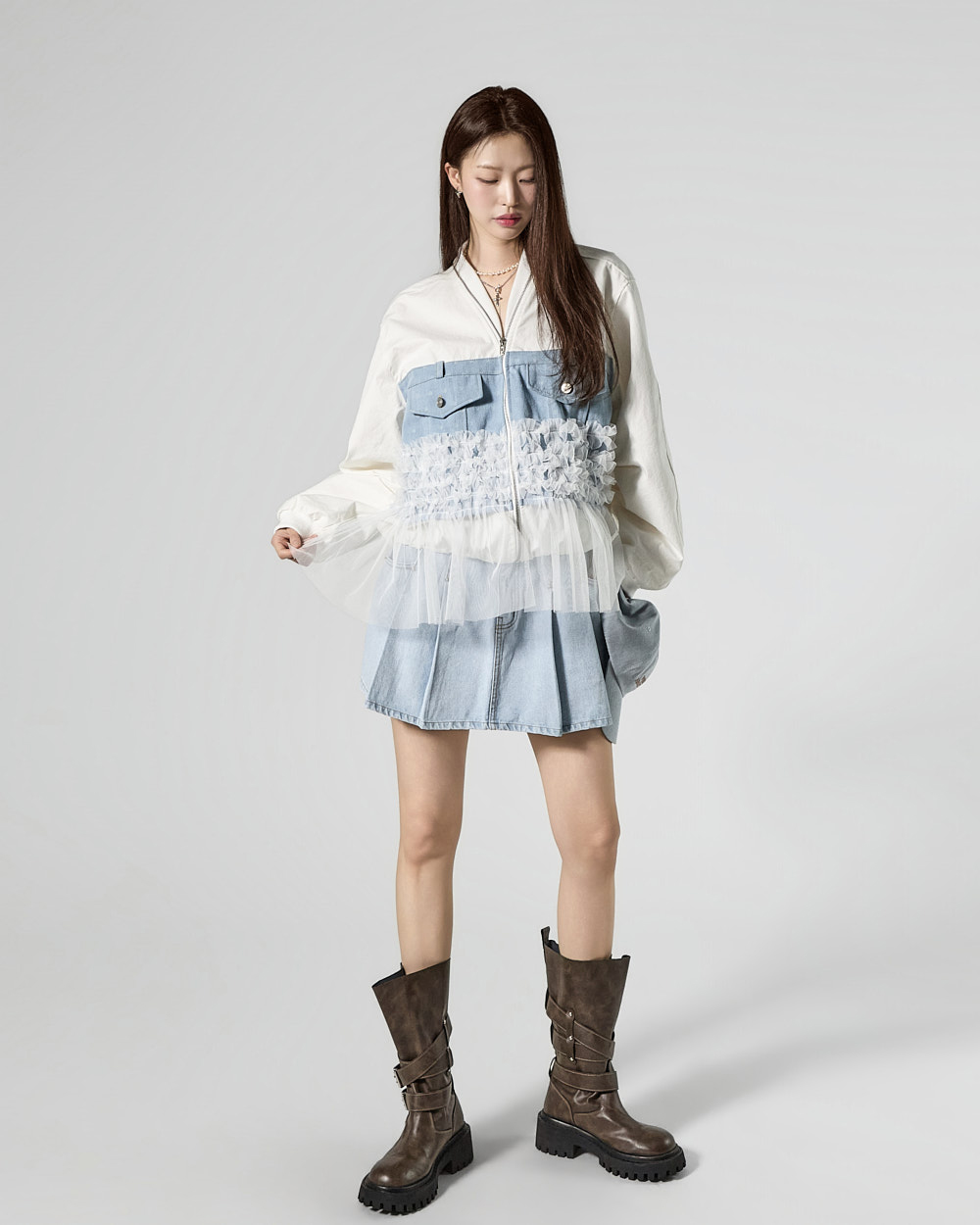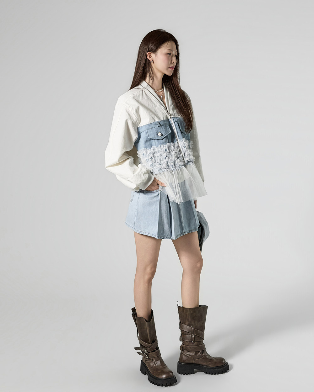 러블리한 무드의 데님 플리츠 스커트입니다.