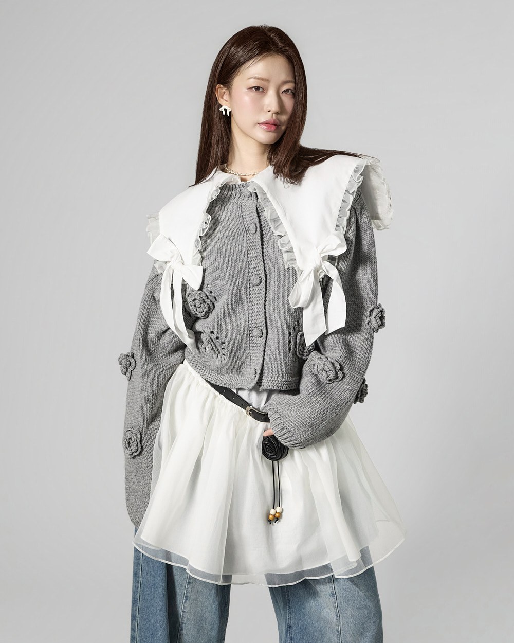 캐주얼한 무드의 크로쉐 핸드메이드 가디건입니다.