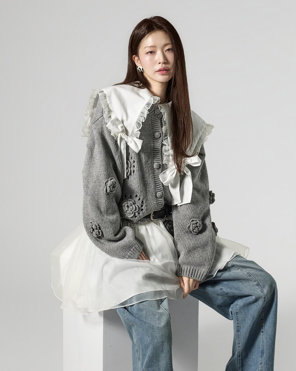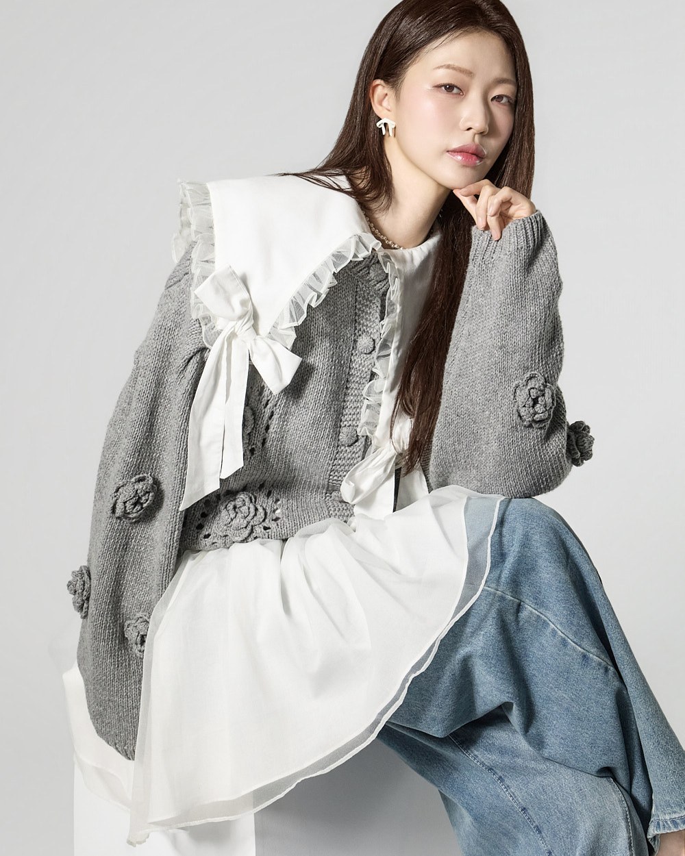 플라워 크로쉐 짜임 디테일이 포인트가 됩니다.