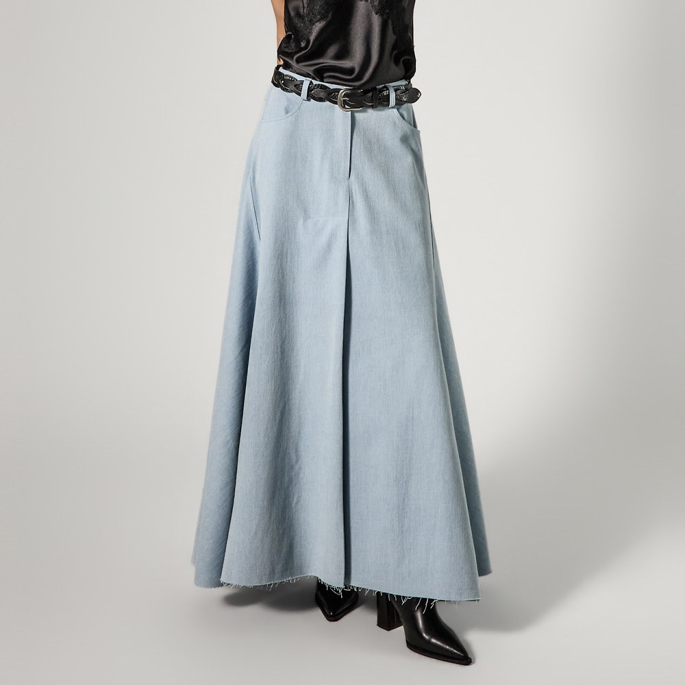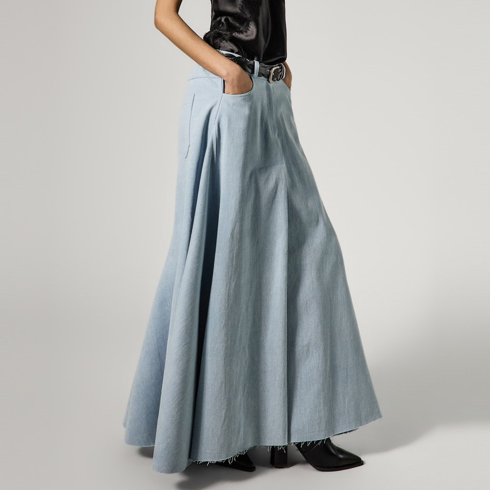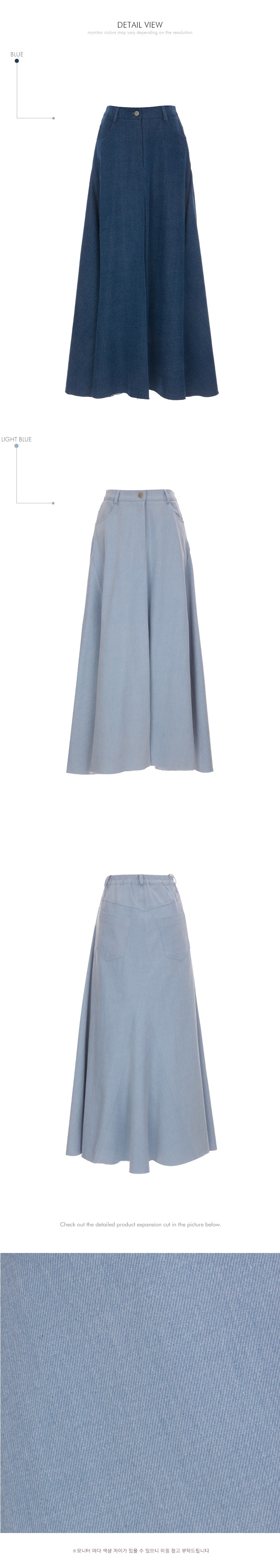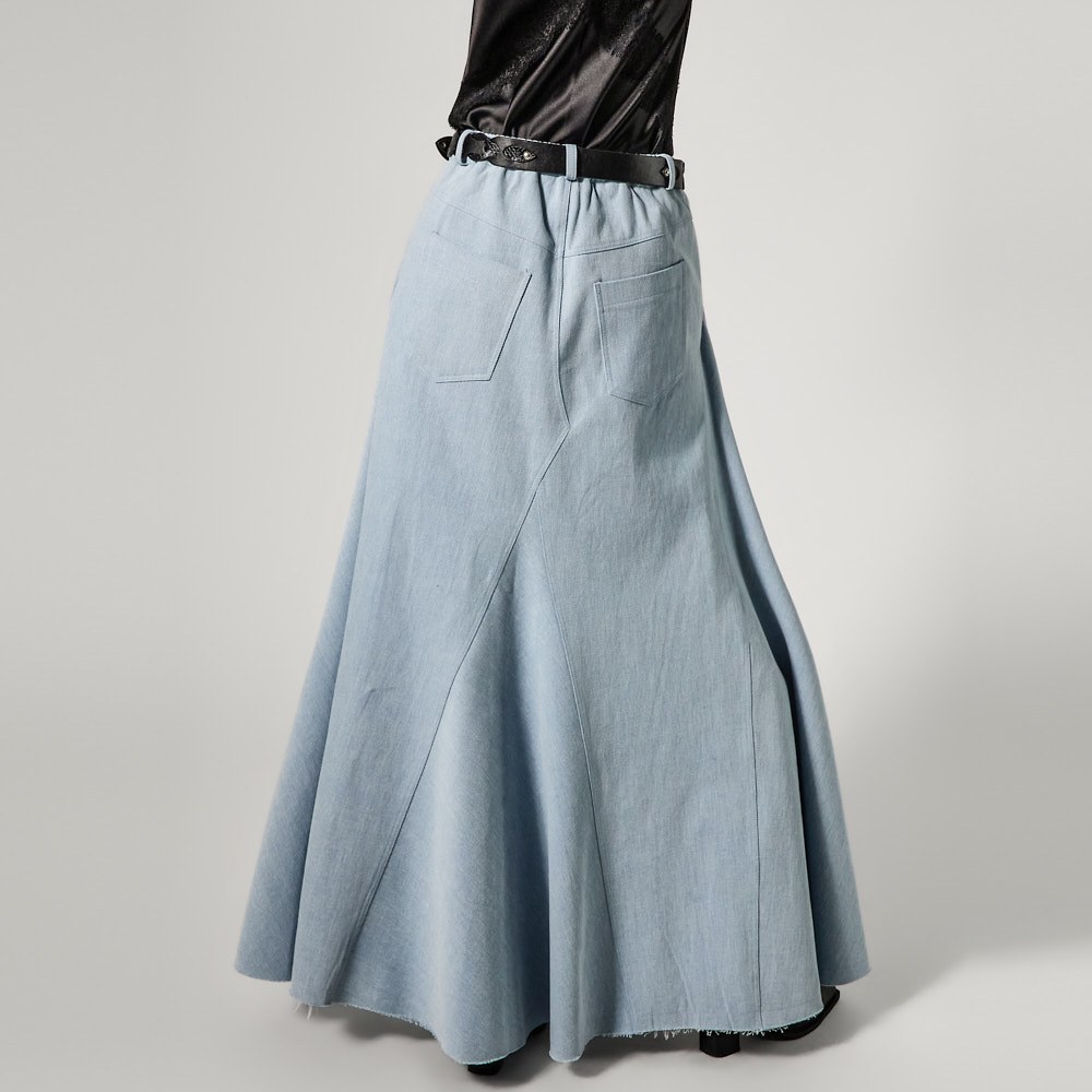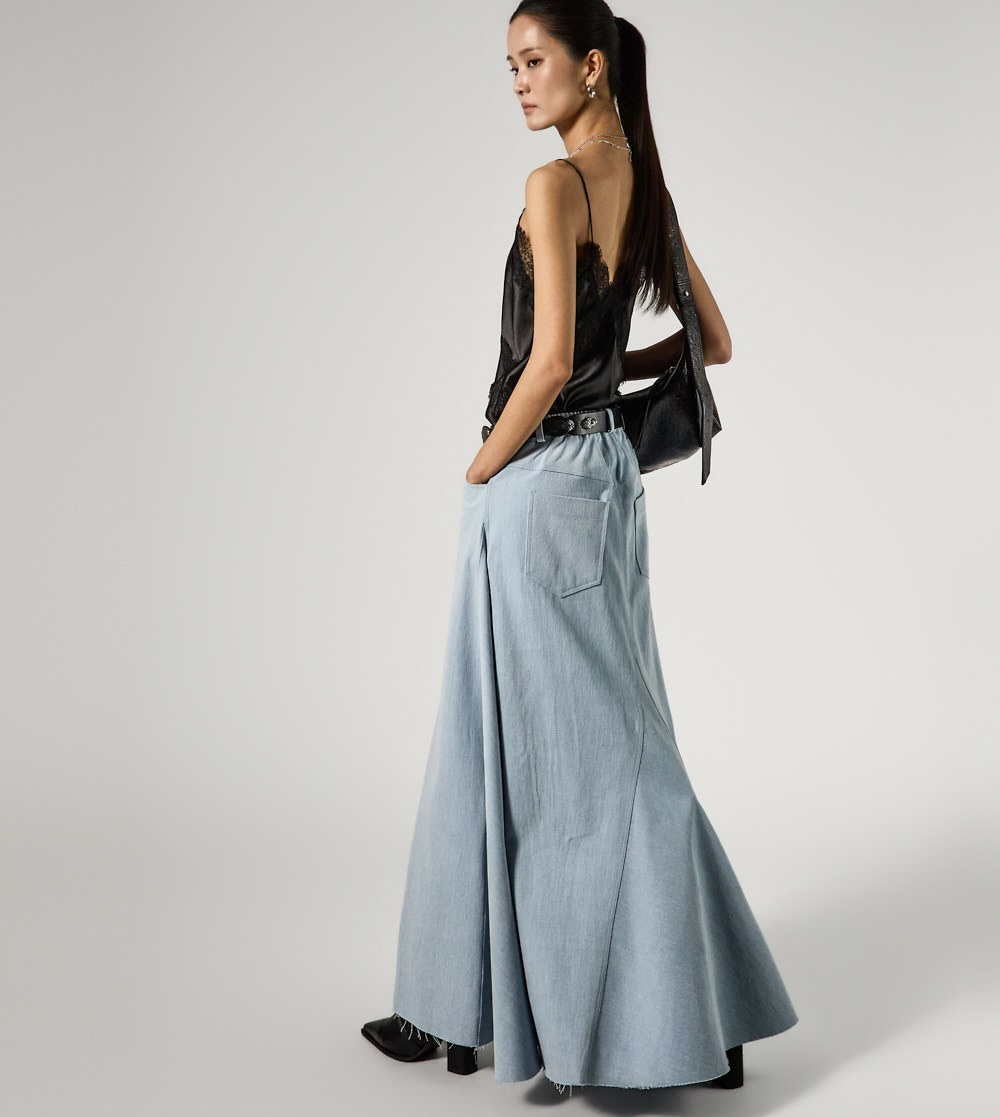캐주얼하면서 미니멀한 무드의 데님 맥시 스커트입니다.