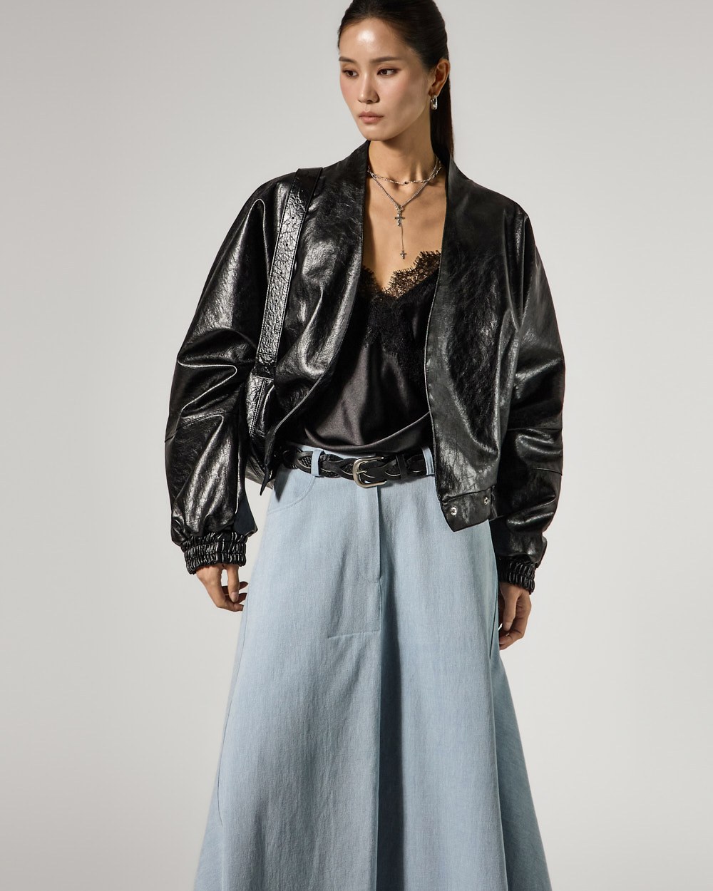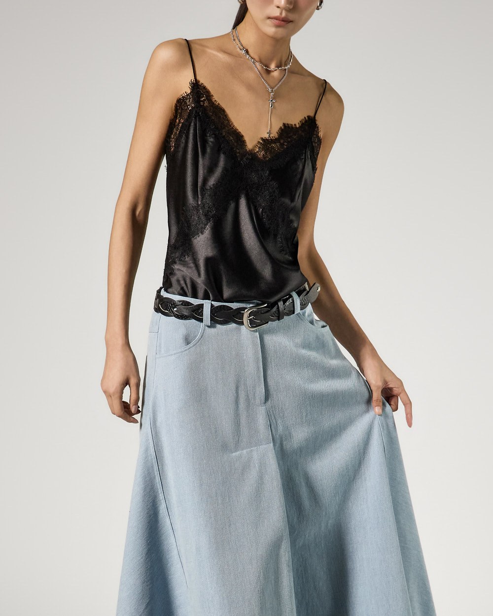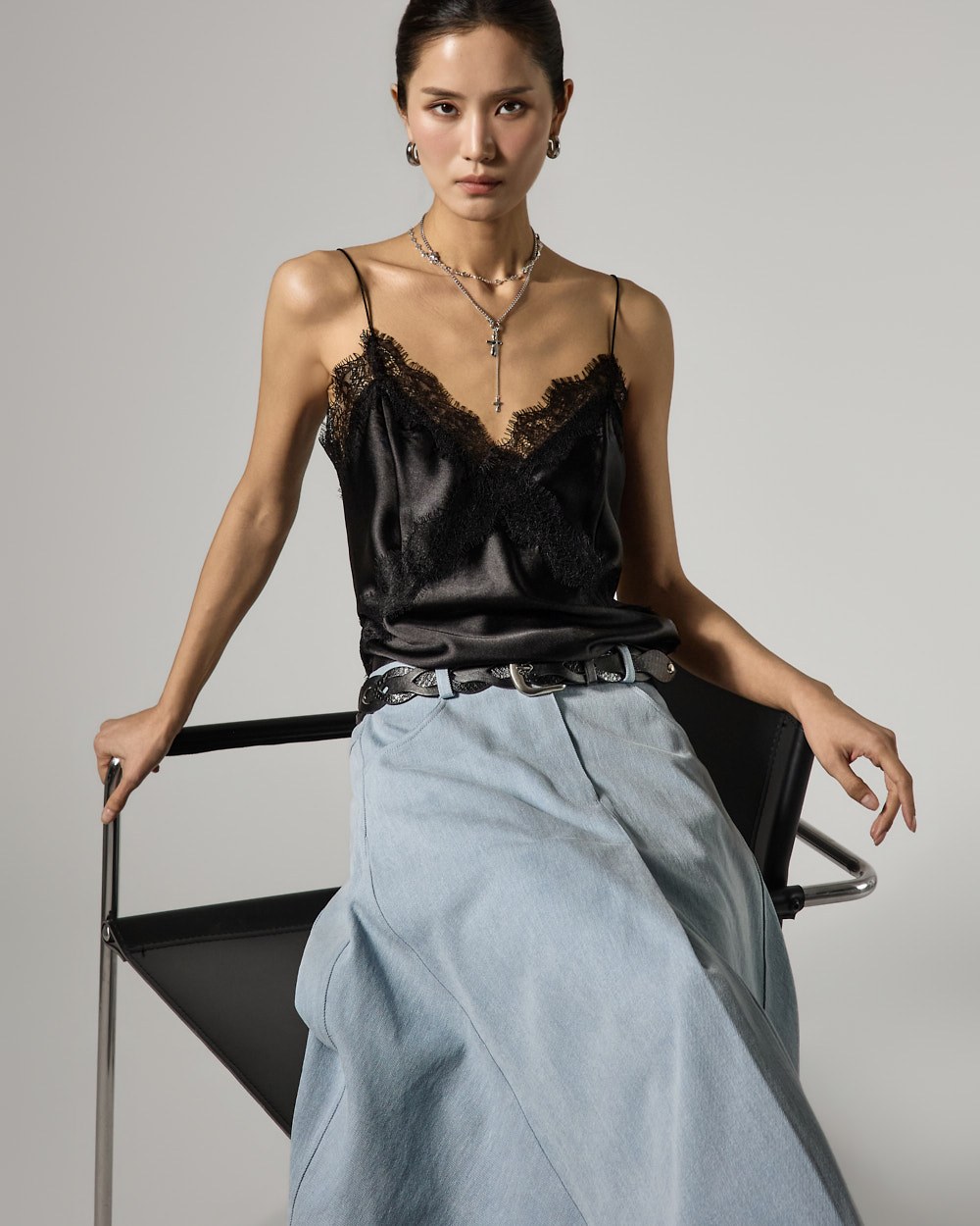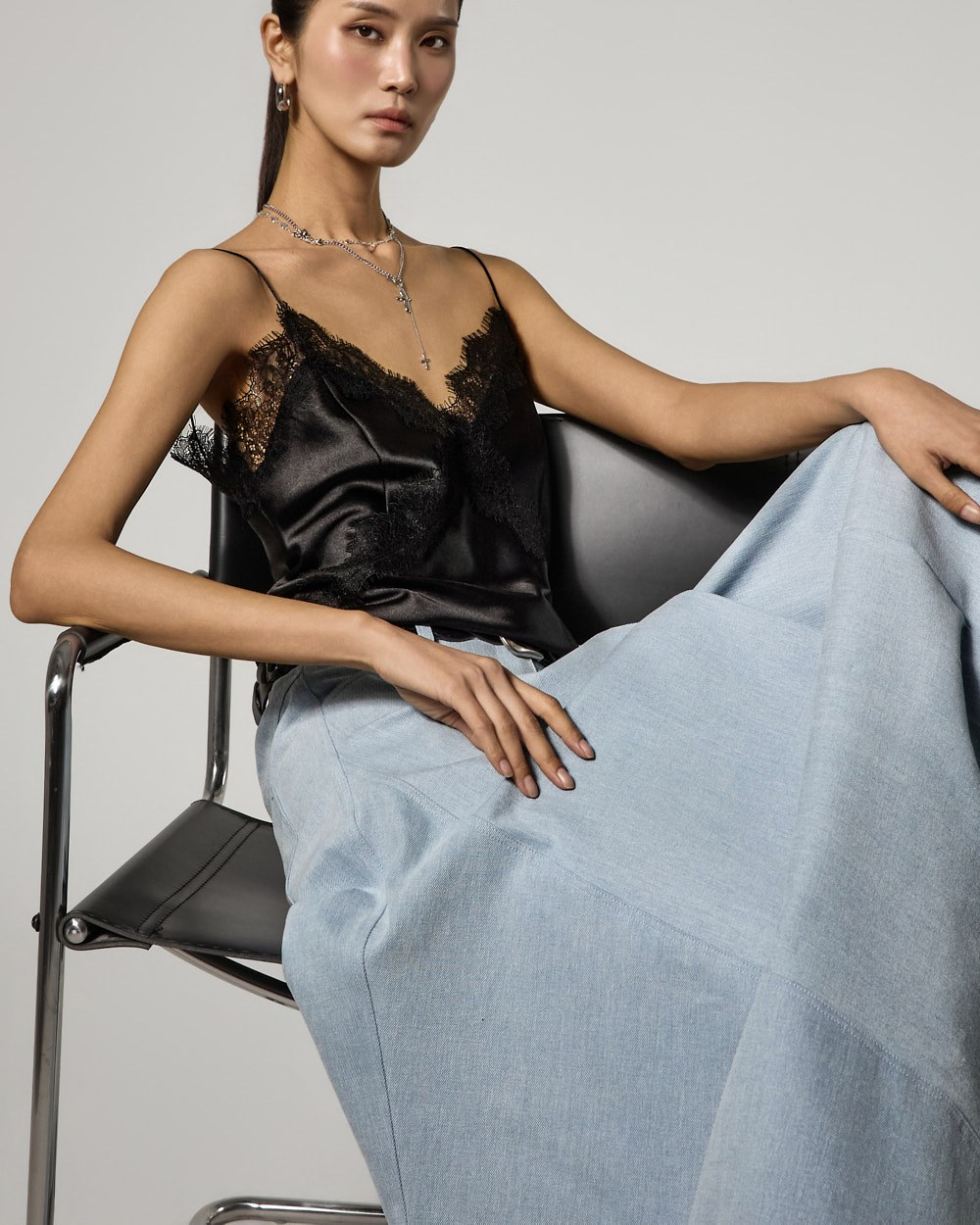 캐주얼하면서 미니멀한 무드의 데님 맥시 스커트입니다.