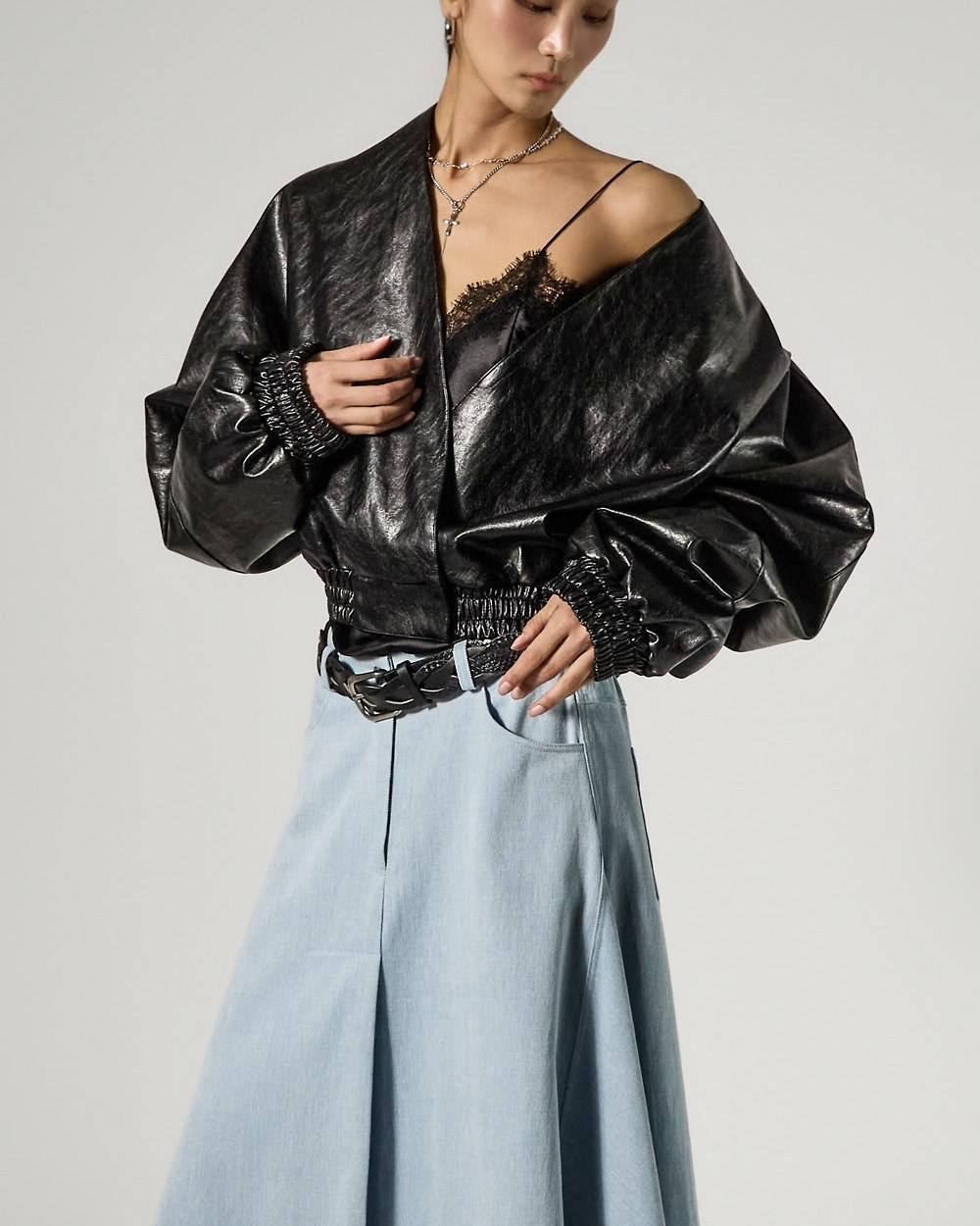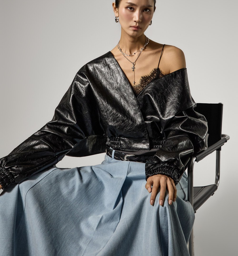 와이드하게 떨어지는 루즈핏 실루엣으로