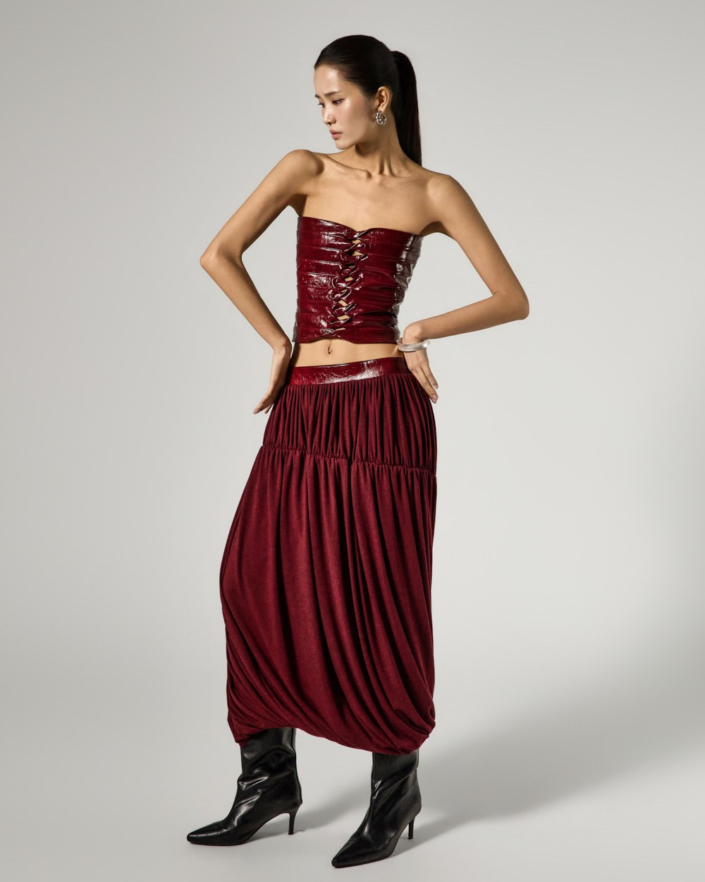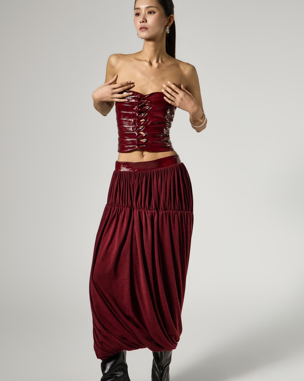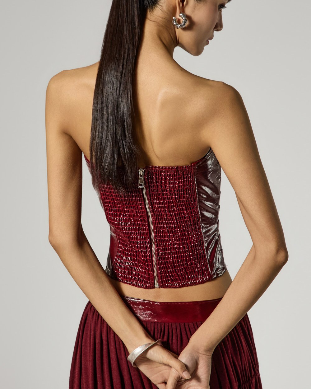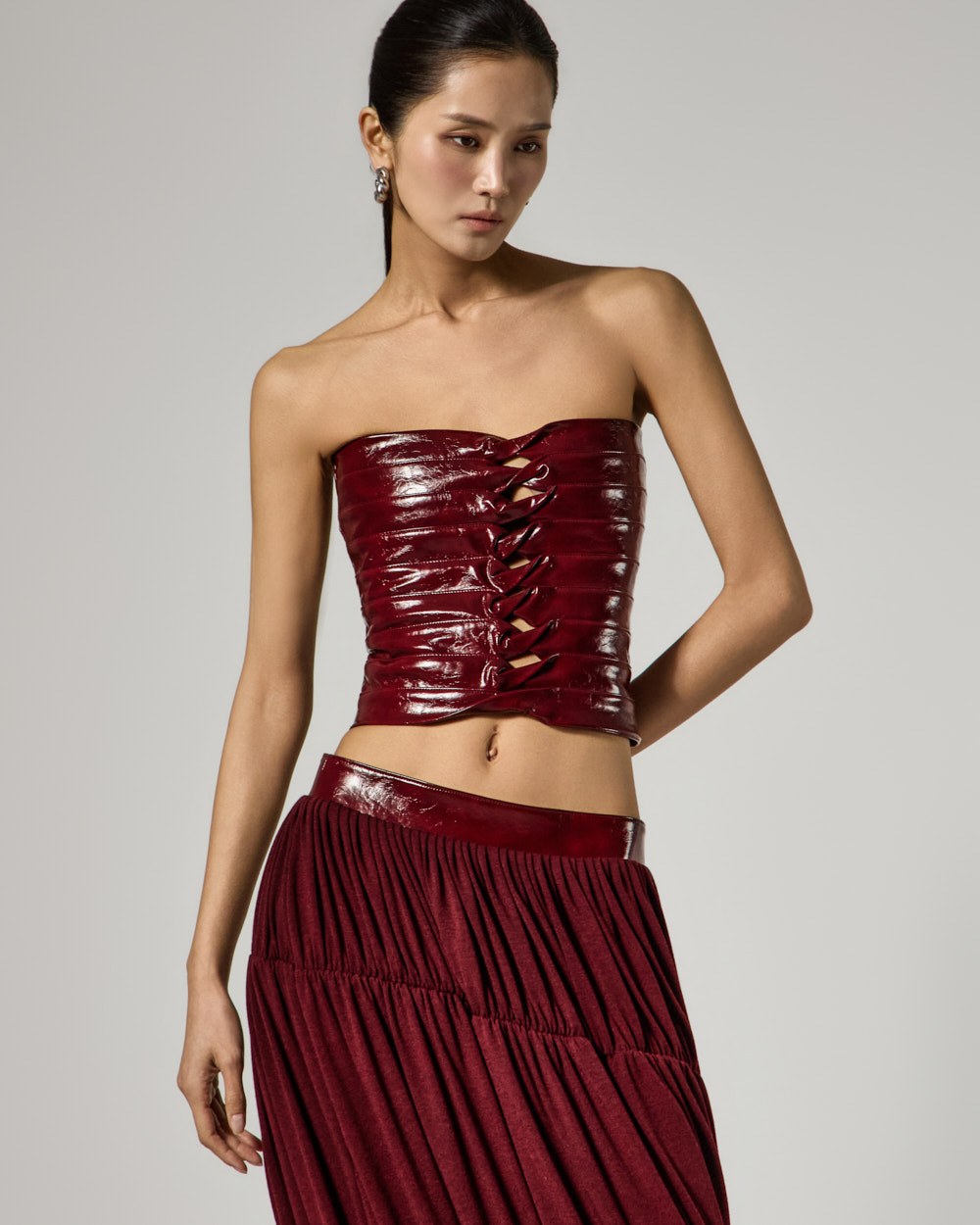 유니크한 무드의 코르셋 레더 튜브탑입니다.