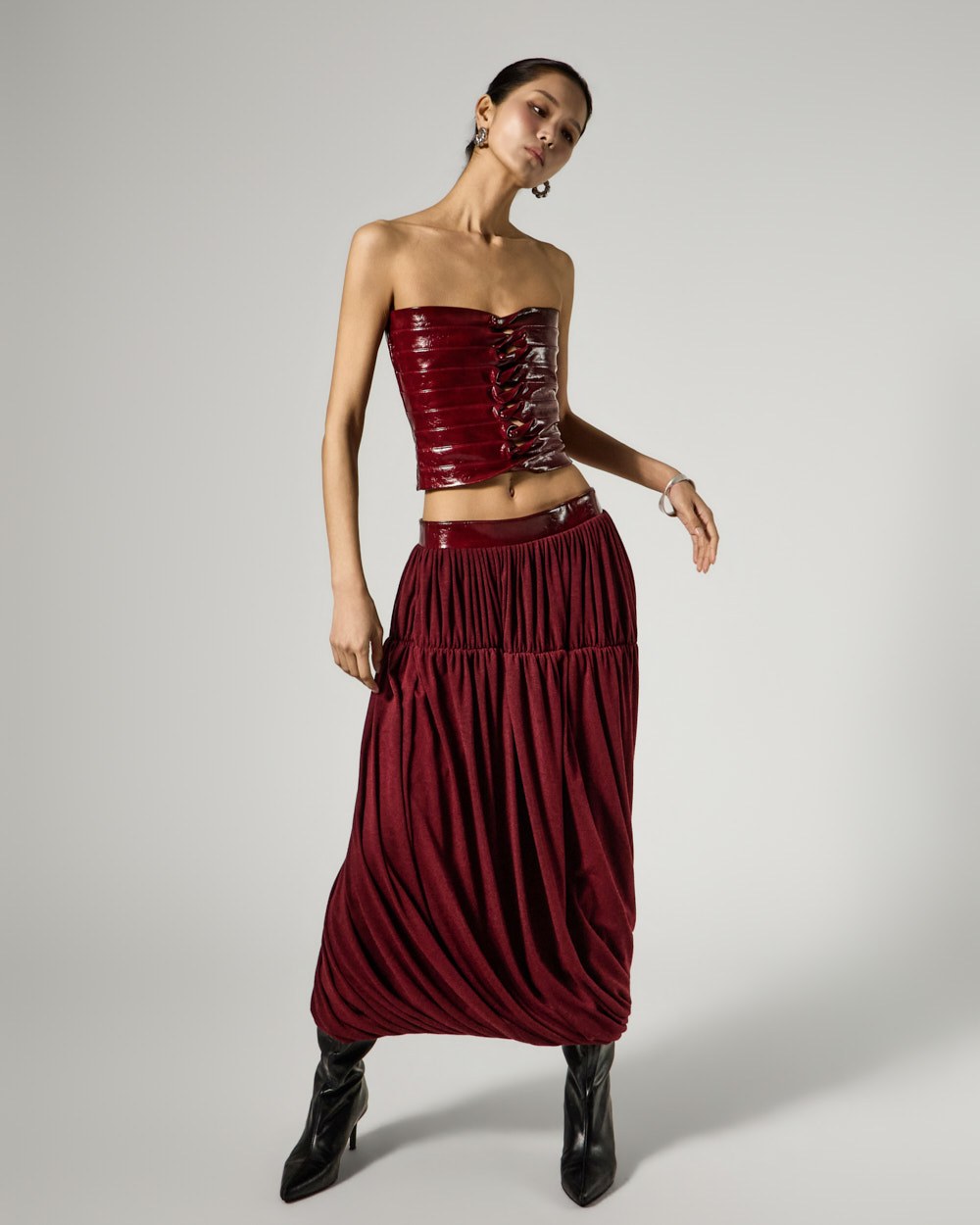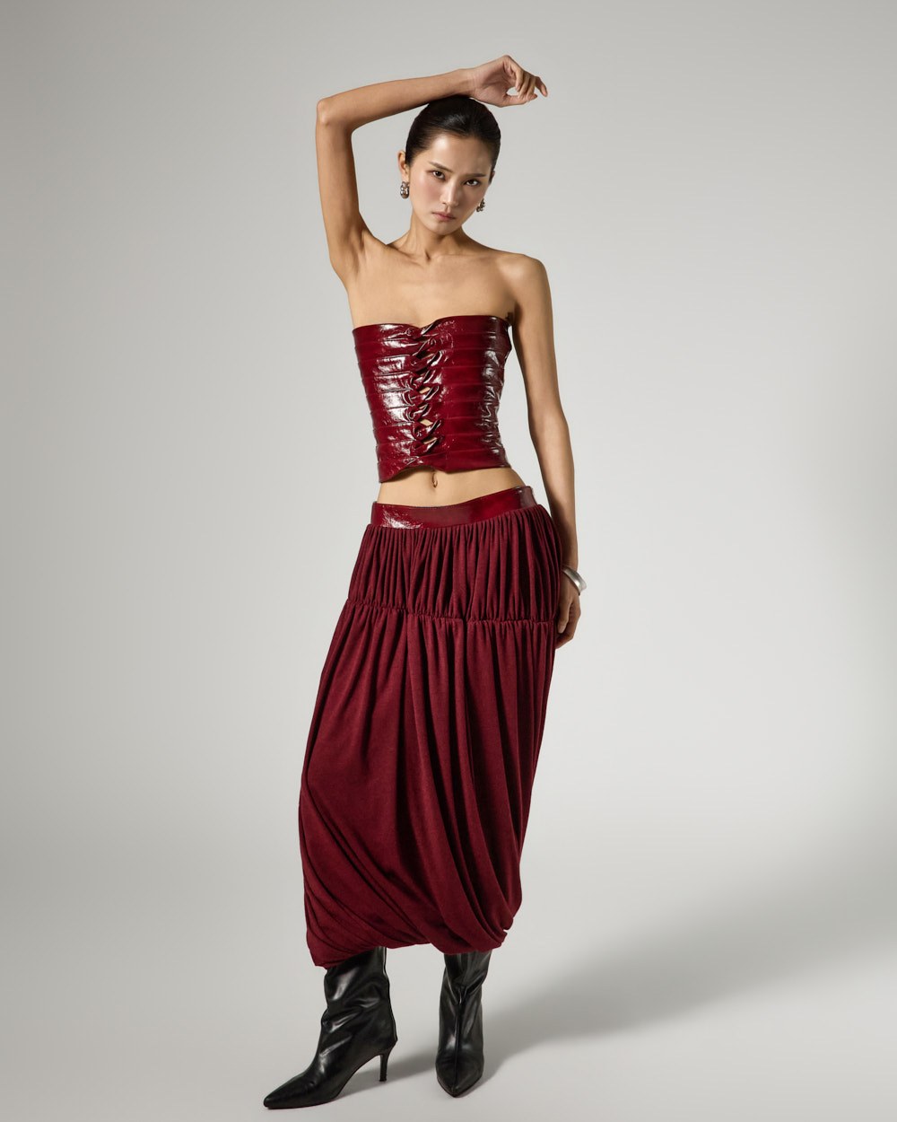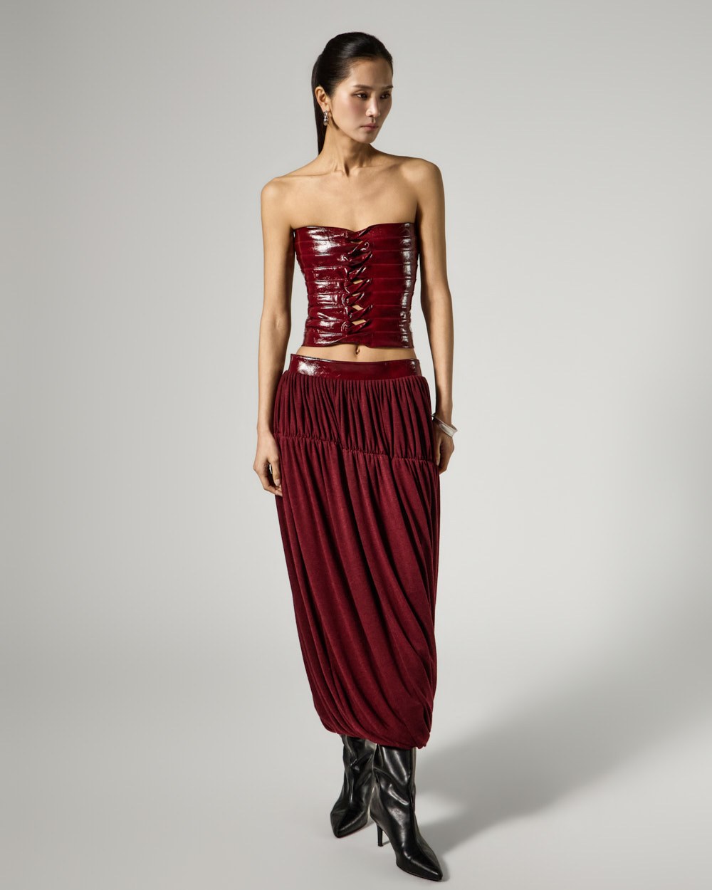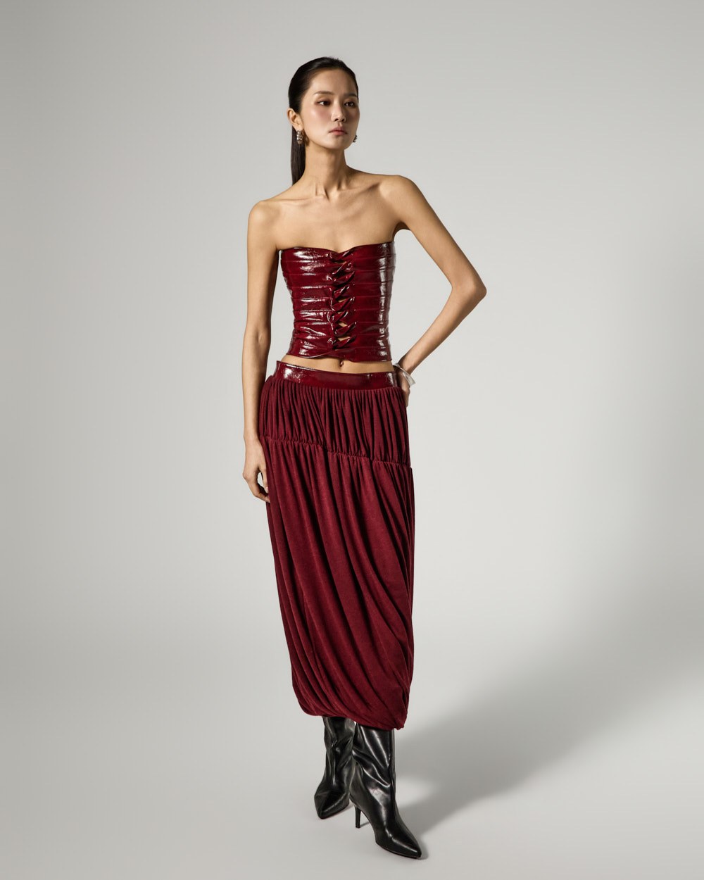 유니크한 무드의 코르셋 레더 튜브탑입니다.