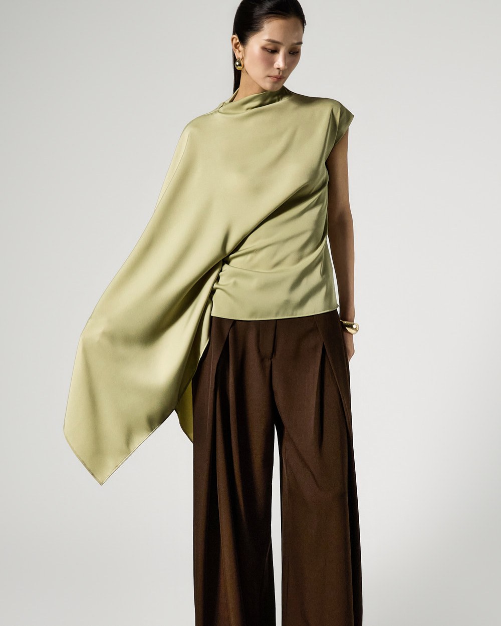 우아한 무드의 사이드 셔링 드레이프 탑입니다.