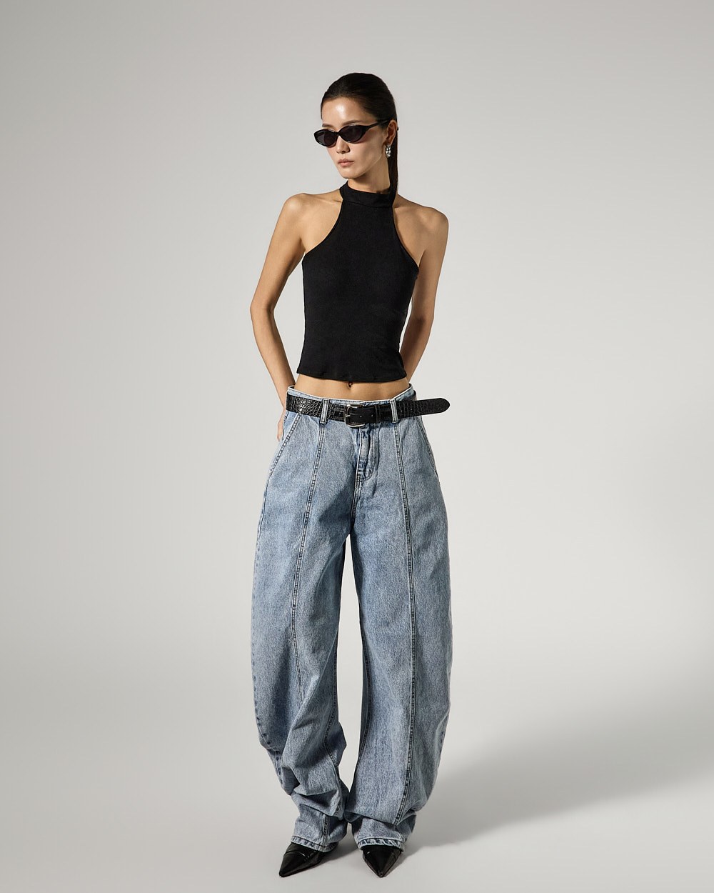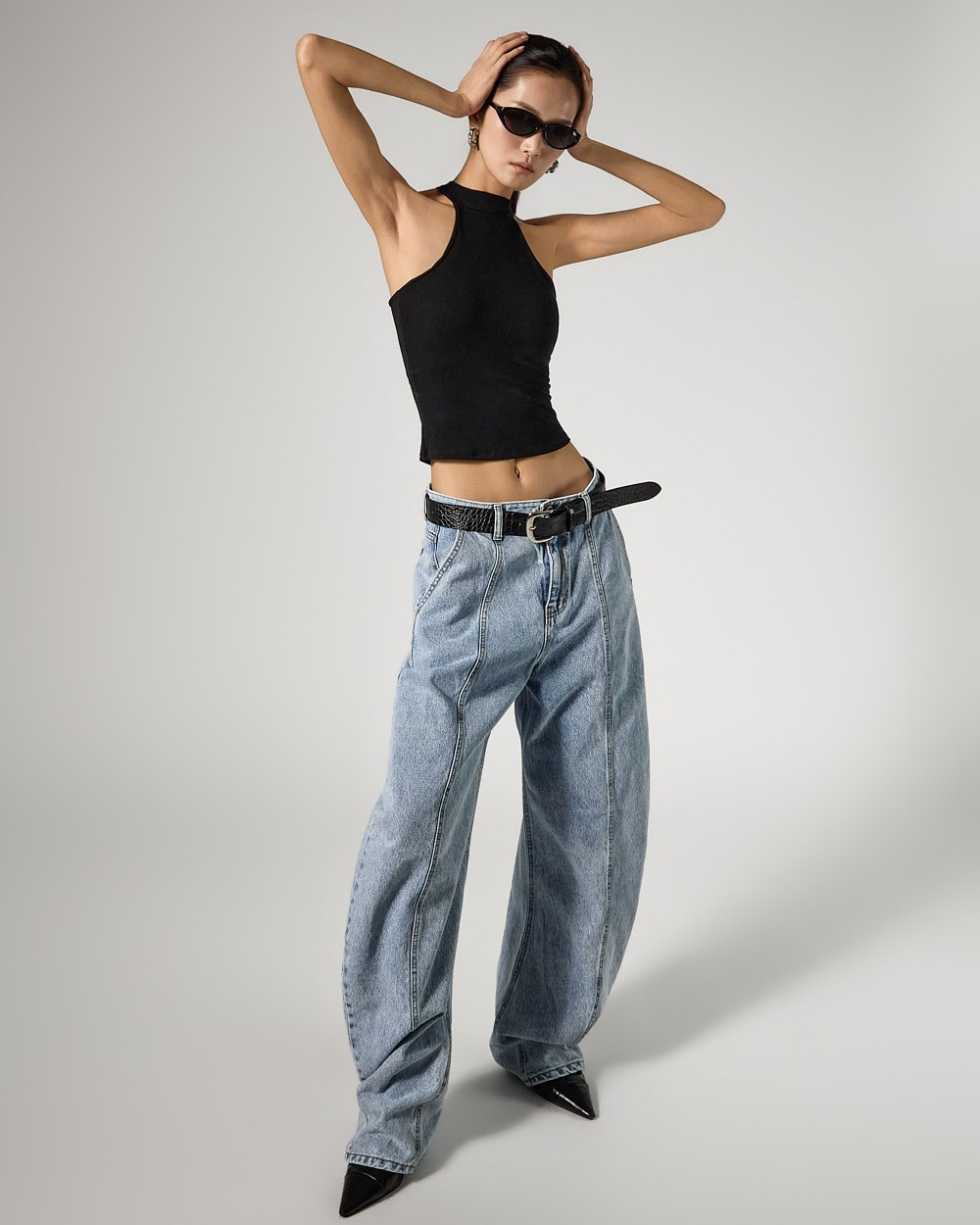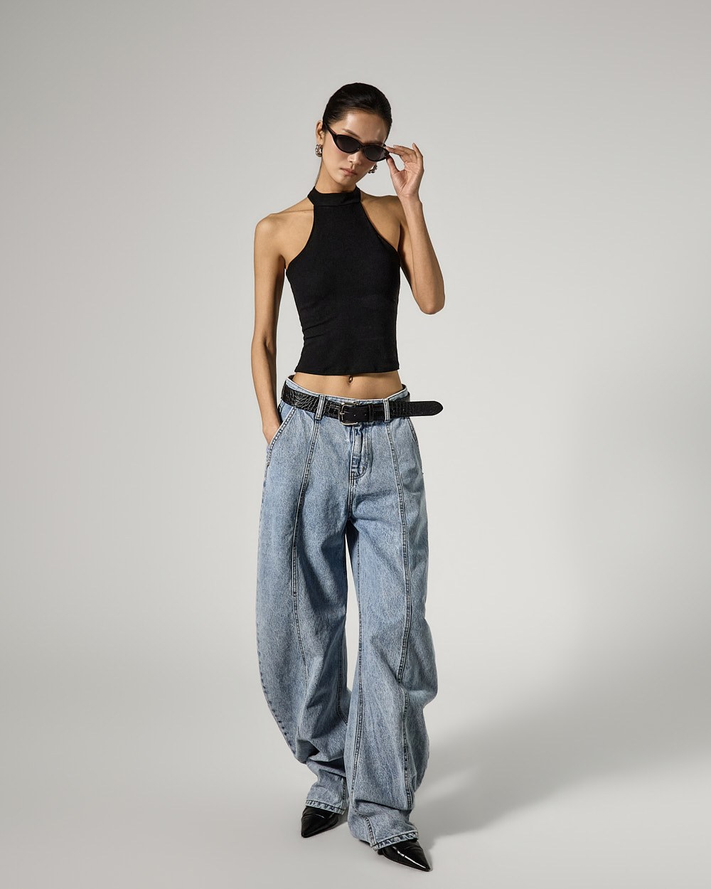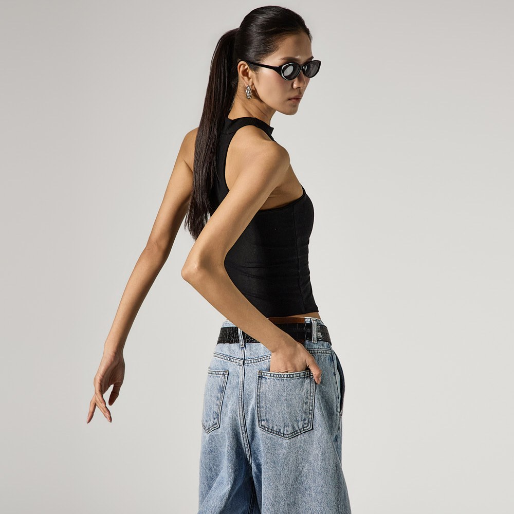 세미 크롭 기장과 슬림핏 라인으로 바디 라인을