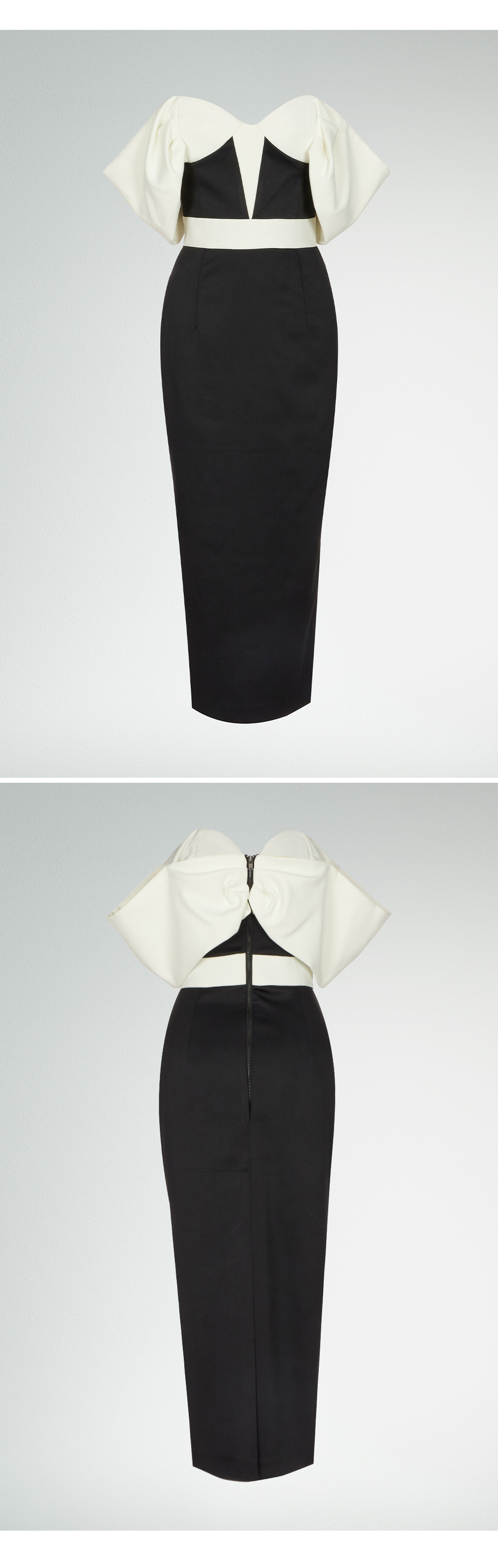 바스트 라인의 튜브탑 쉐입과 배색 디테일이