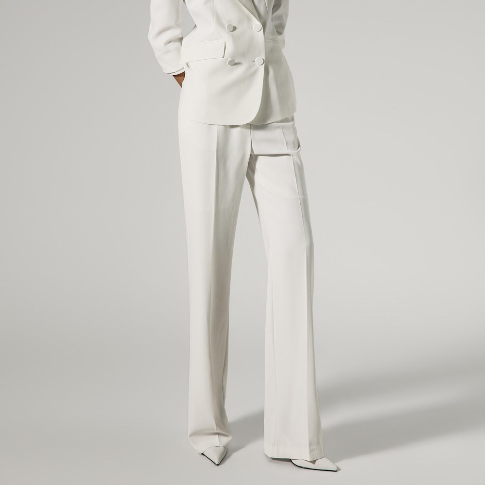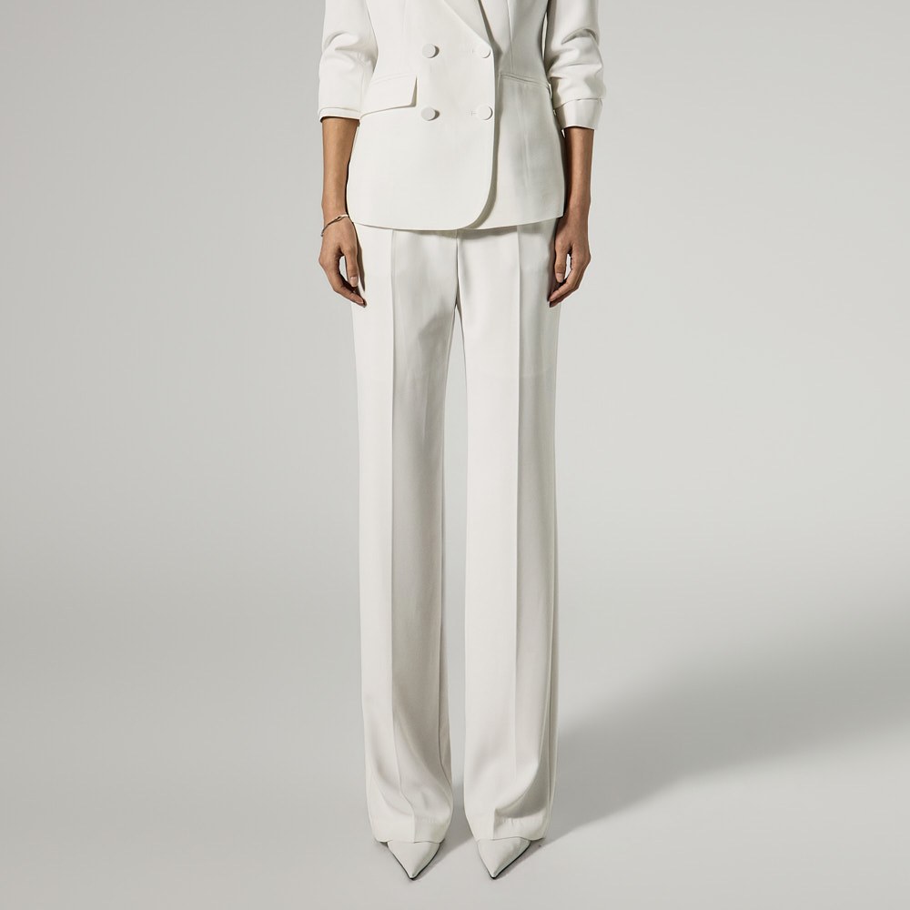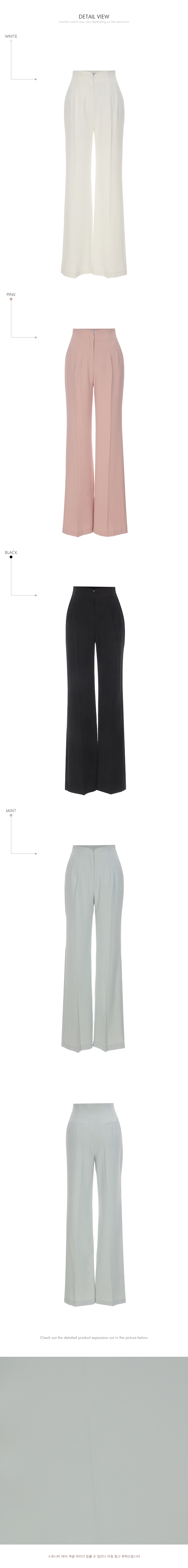 슬랙스는 후크, 지퍼, 히든 단추 여밈으로 안정적인 착용이 가능하고