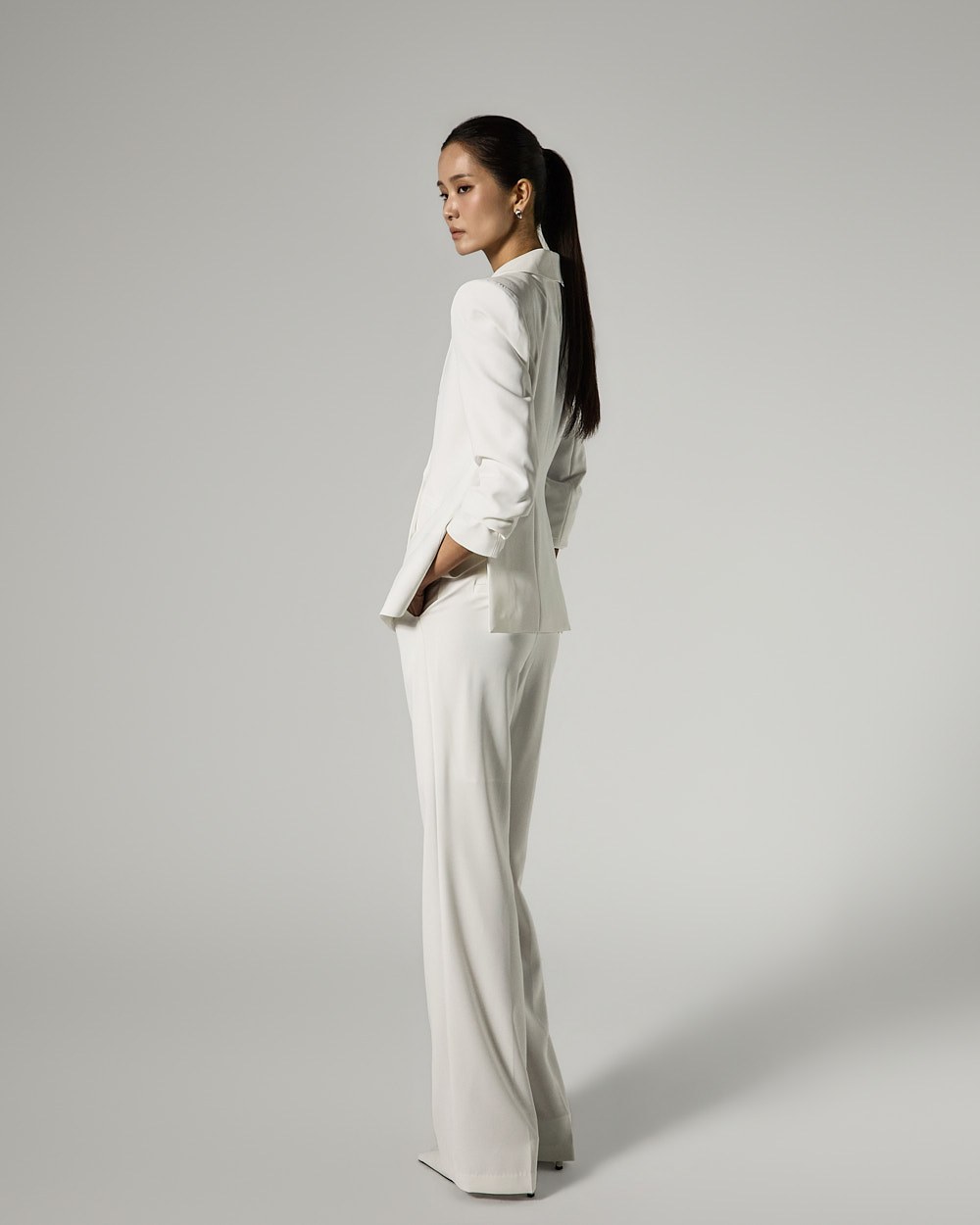 양 사이드 포켓과 뒷트임 디테일로 실용성과 활동성을 높였습니다.