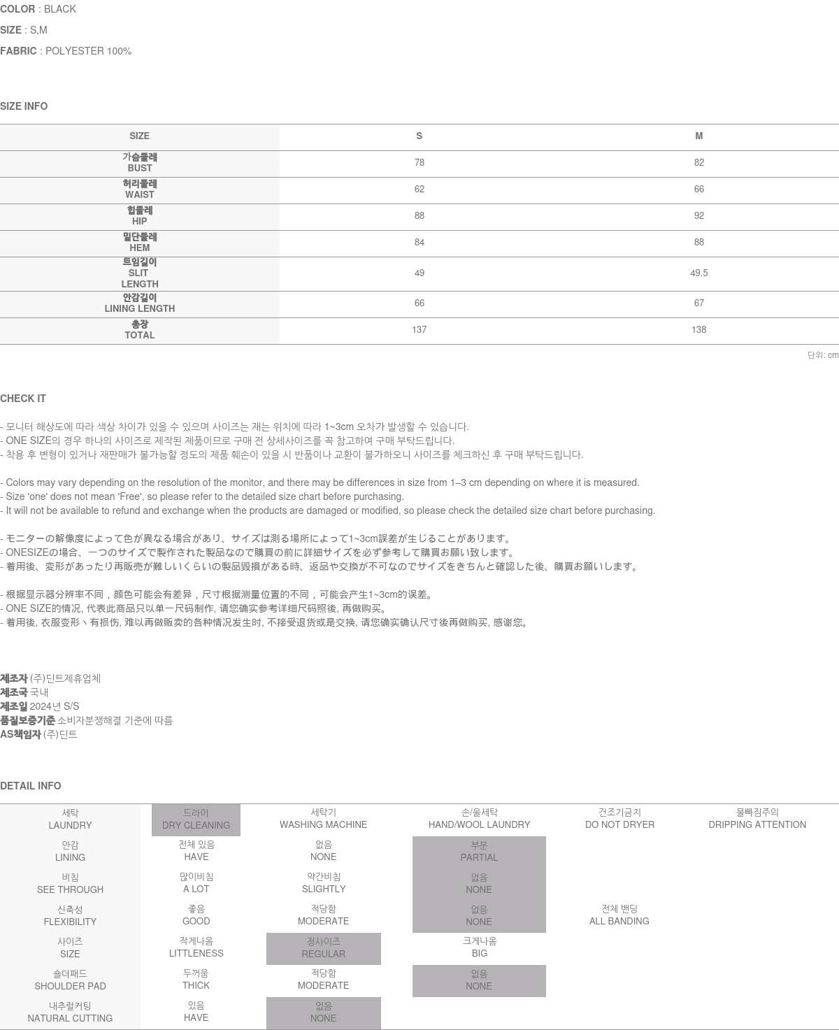 S,M 사이즈 제작으로 체형에 맞게 착용가능합니다.