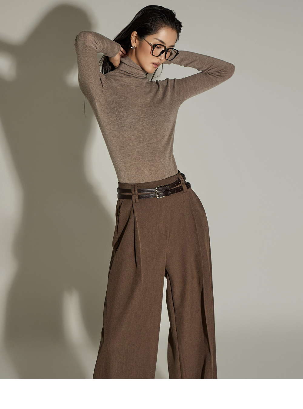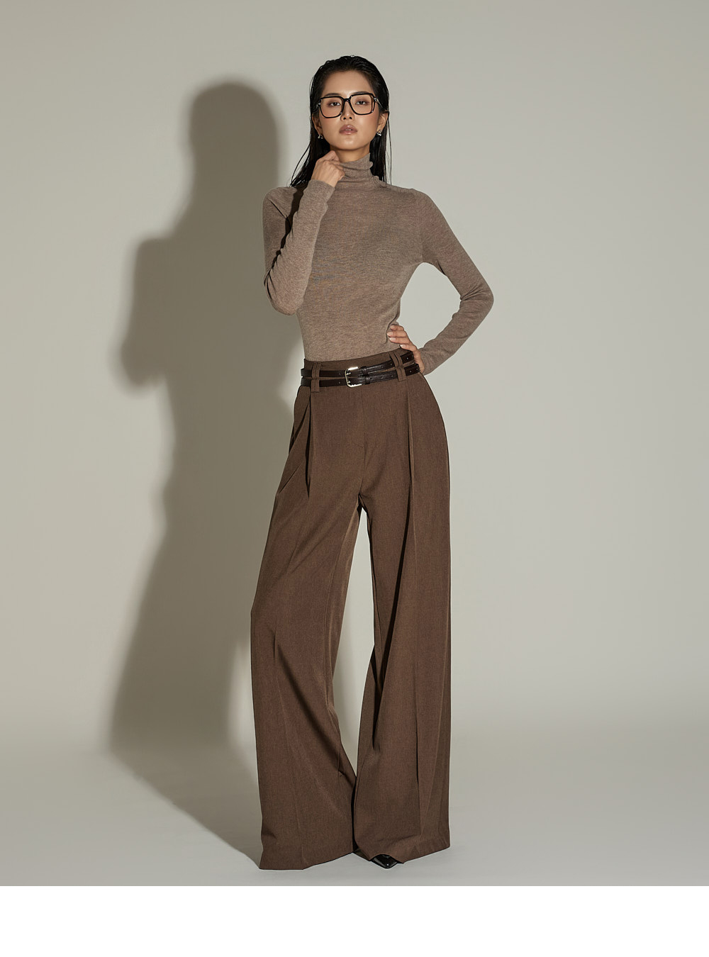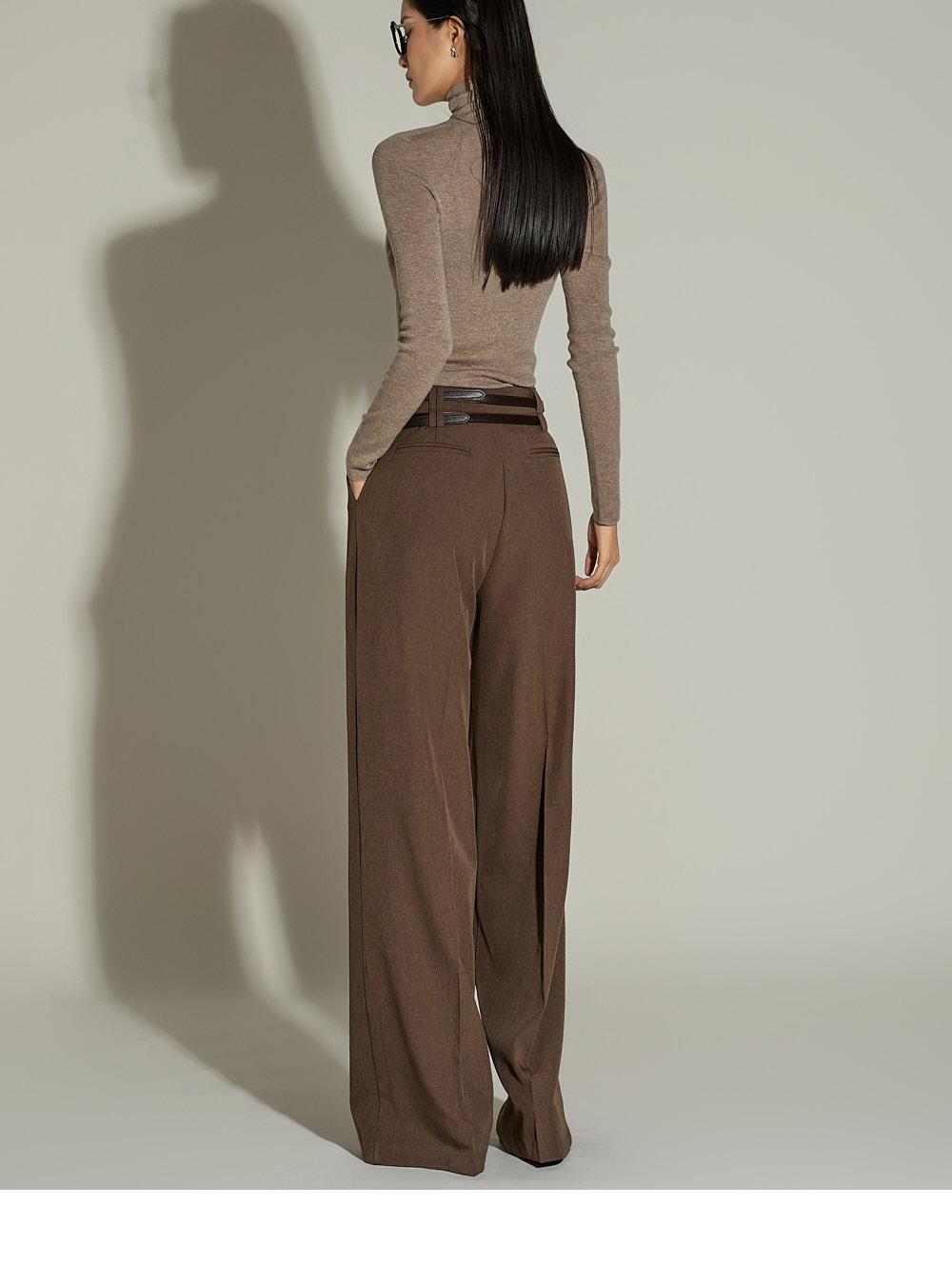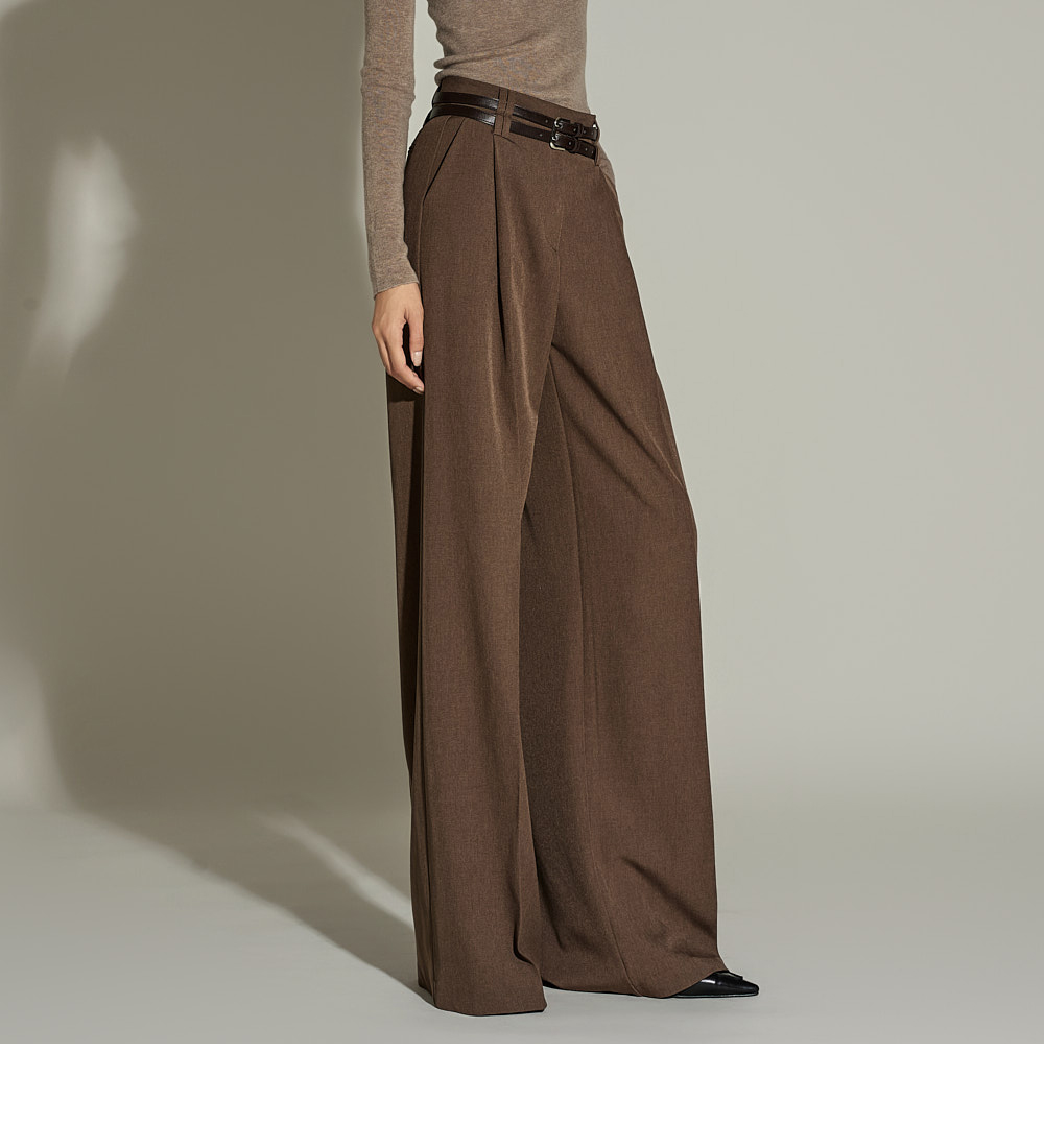 와이드한 실루엣과 전면 핀턱 디테일이 더해져