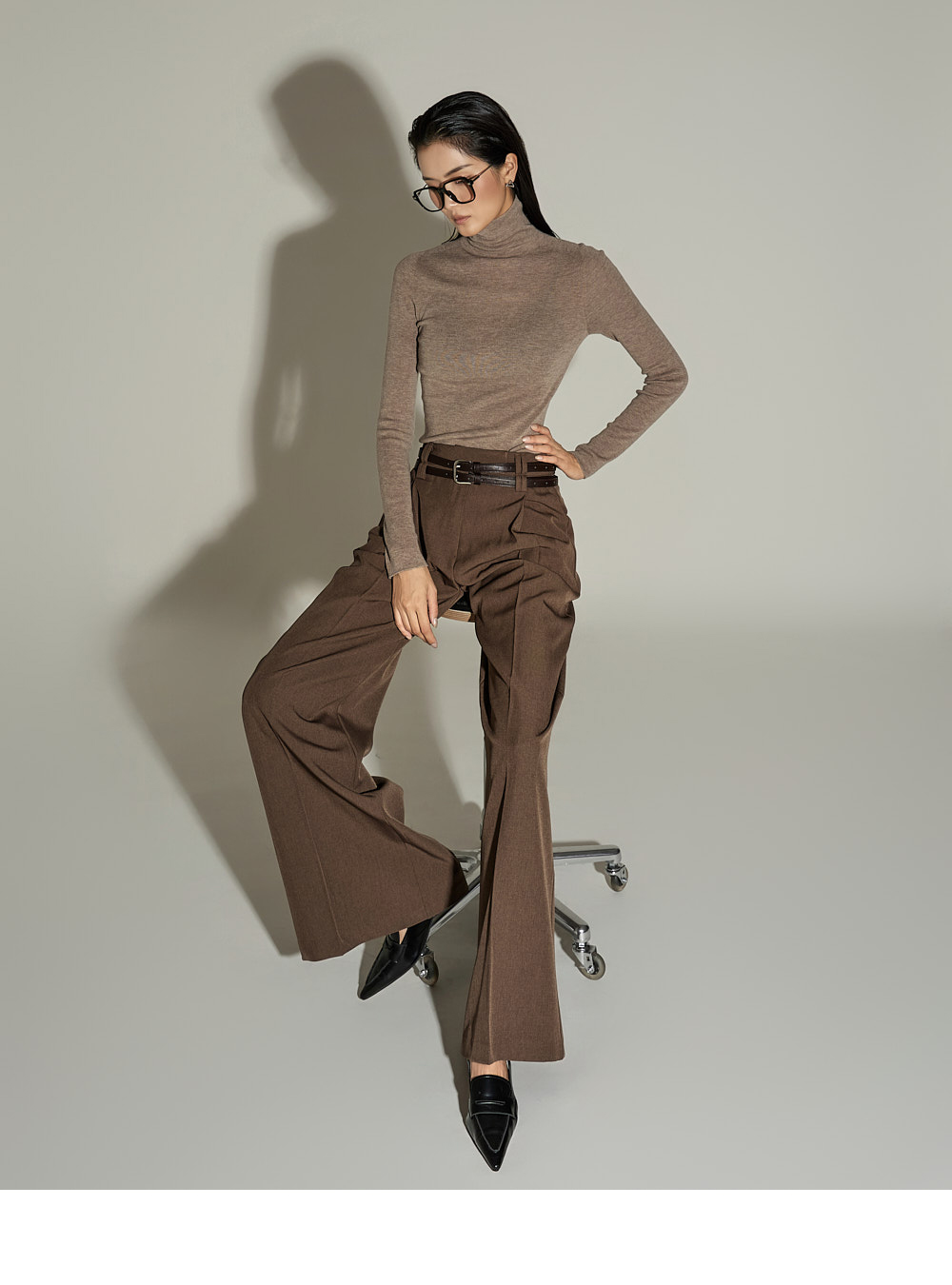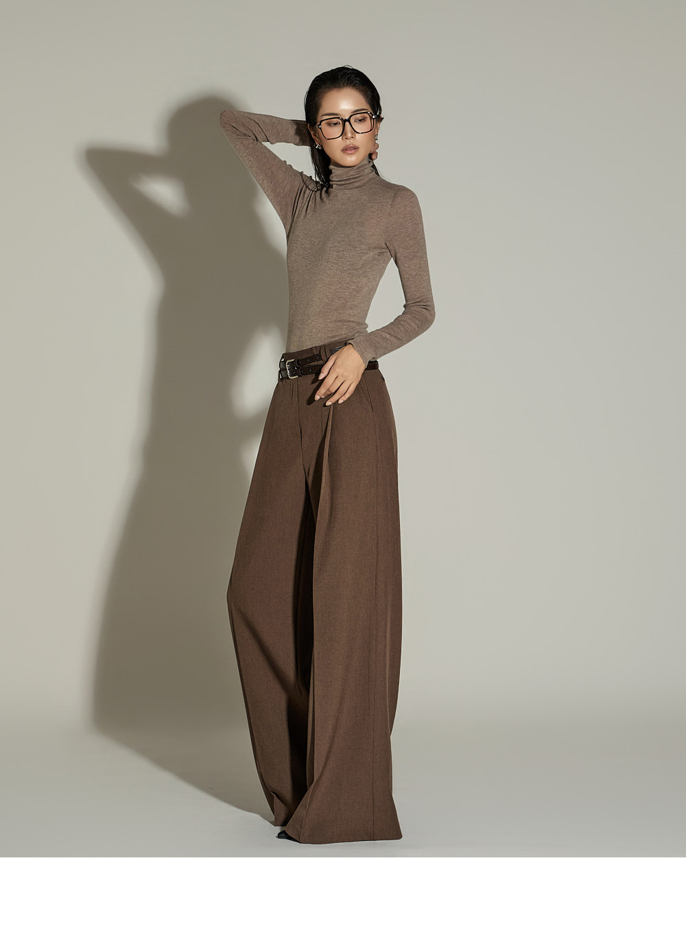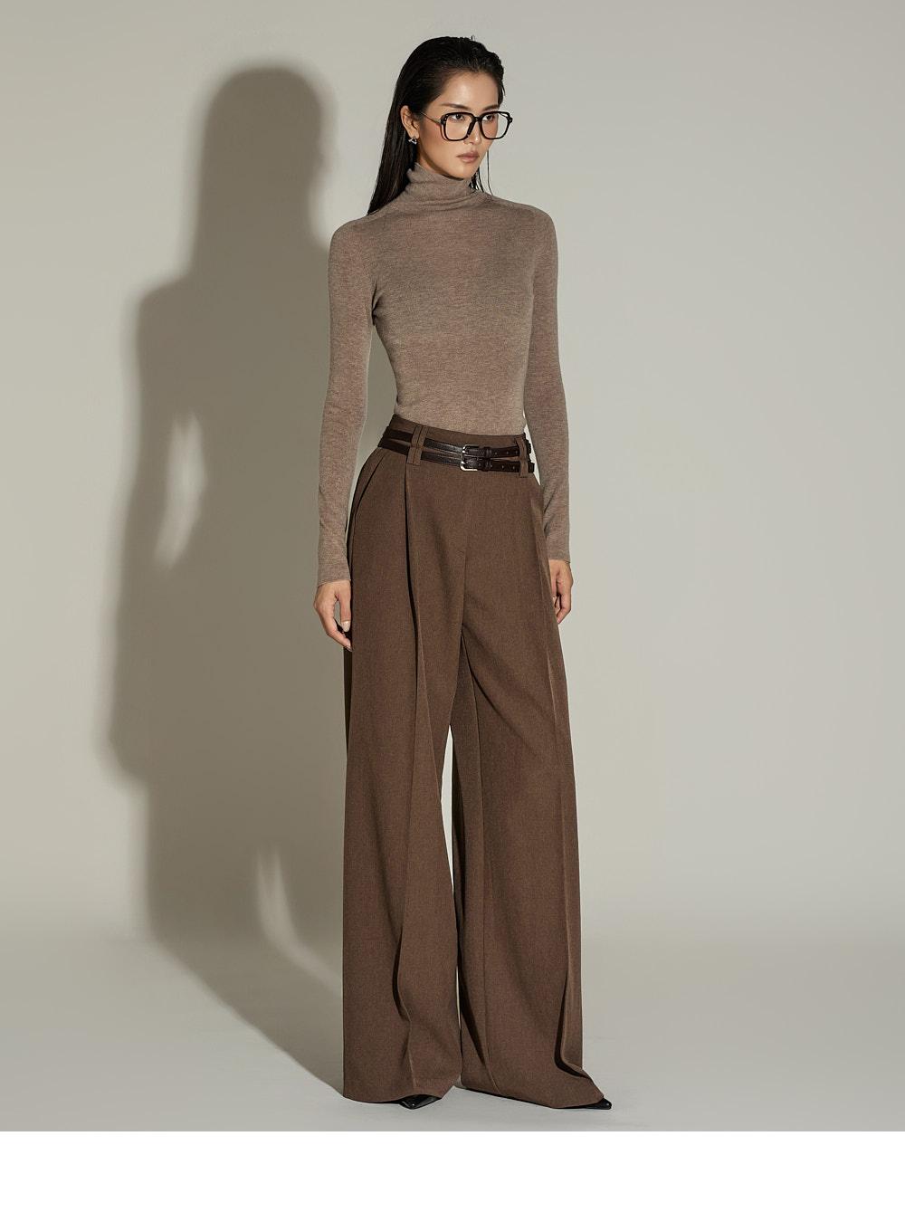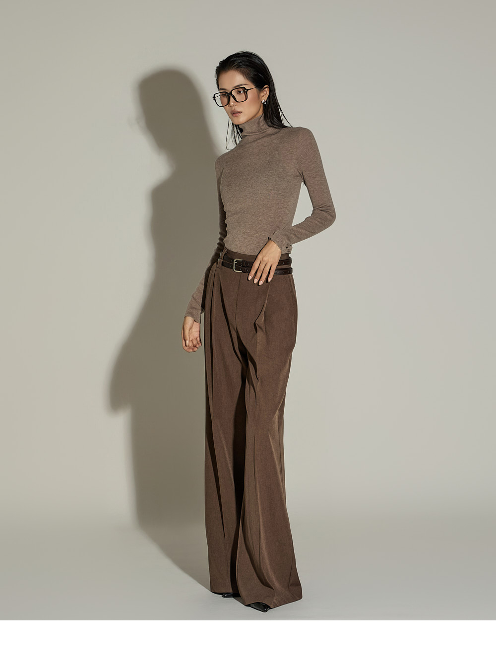 와이드한 실루엣과 전면 핀턱 디테일이 더해져