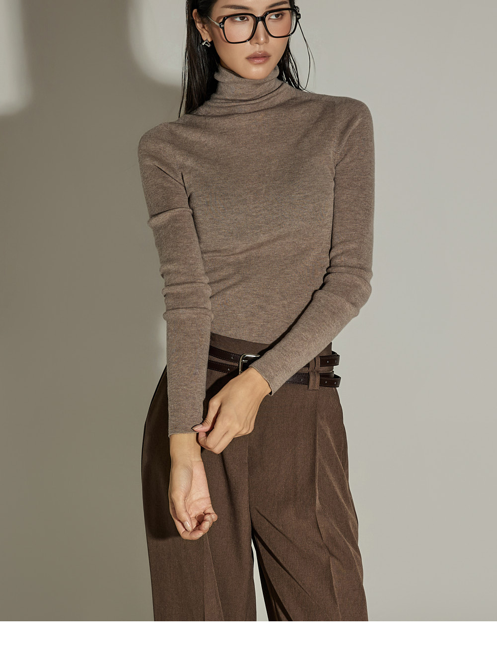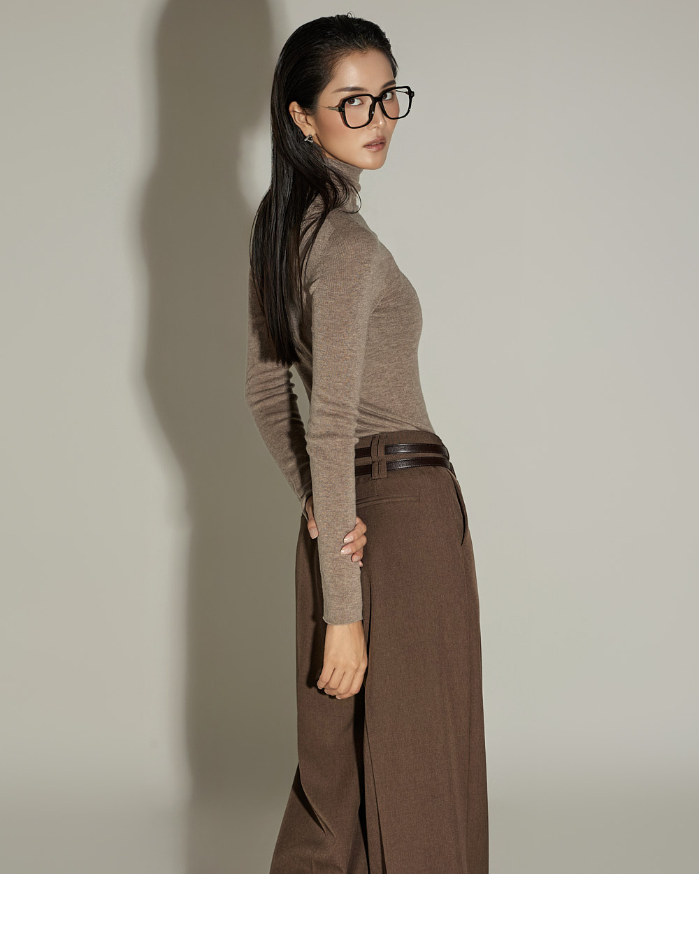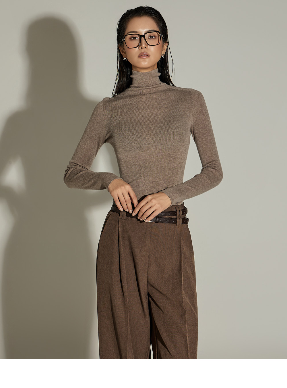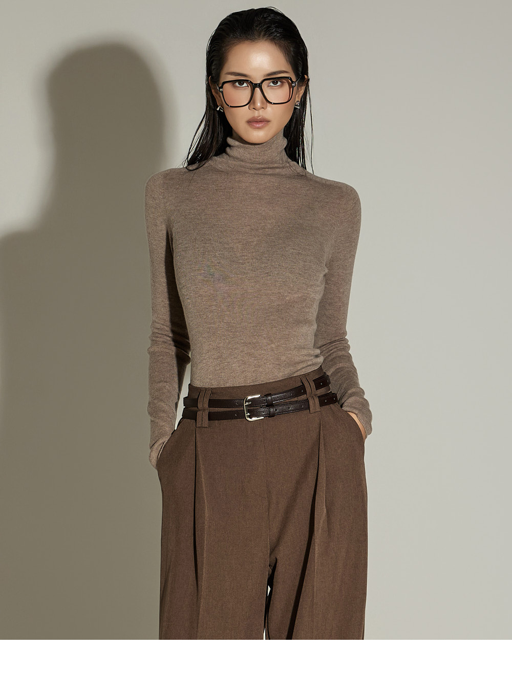 와이드한 실루엣과 전면 핀턱 디테일이 더해져