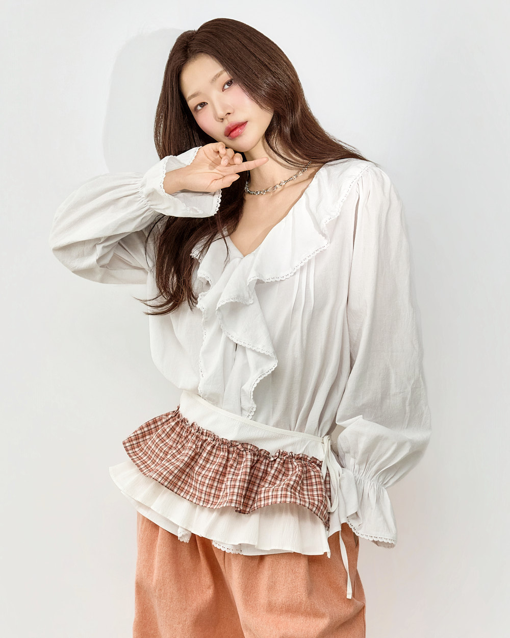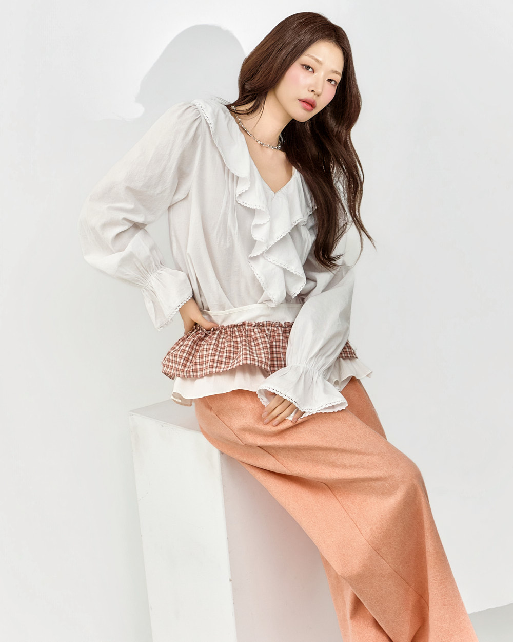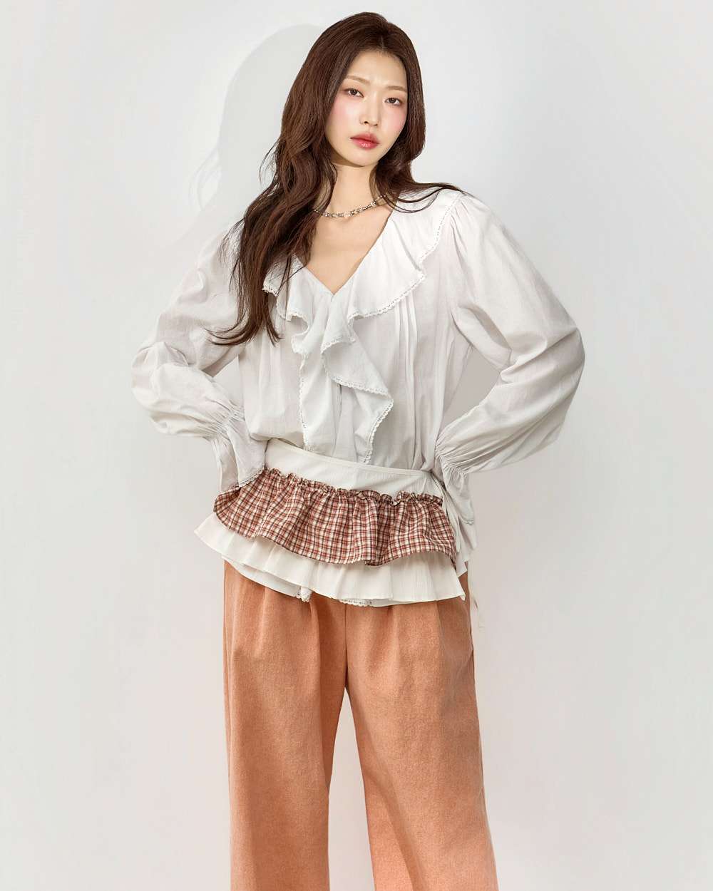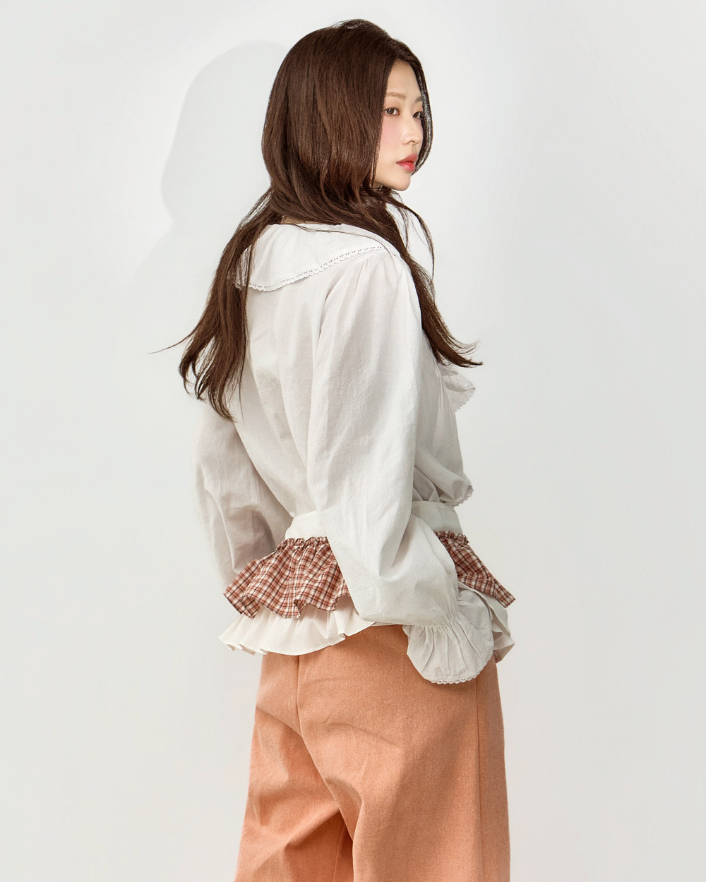 소매 프릴 디테일이 더해져 사랑스러운 포인트를 더해줍니다.