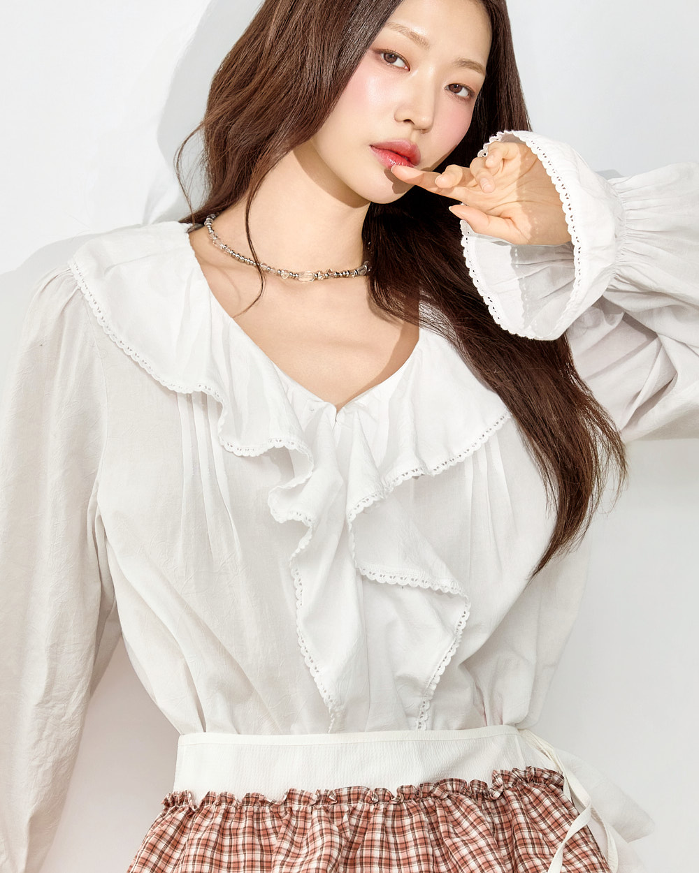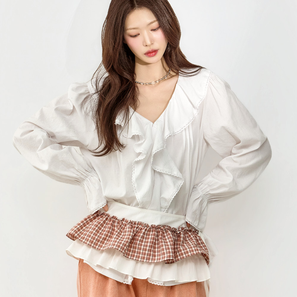 러블리한 무드의 프릴 블라우스입니다.