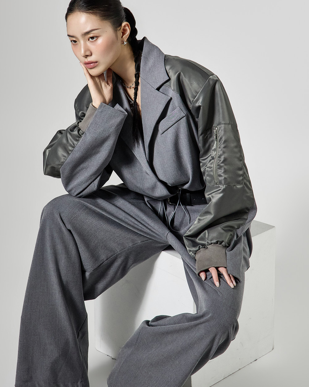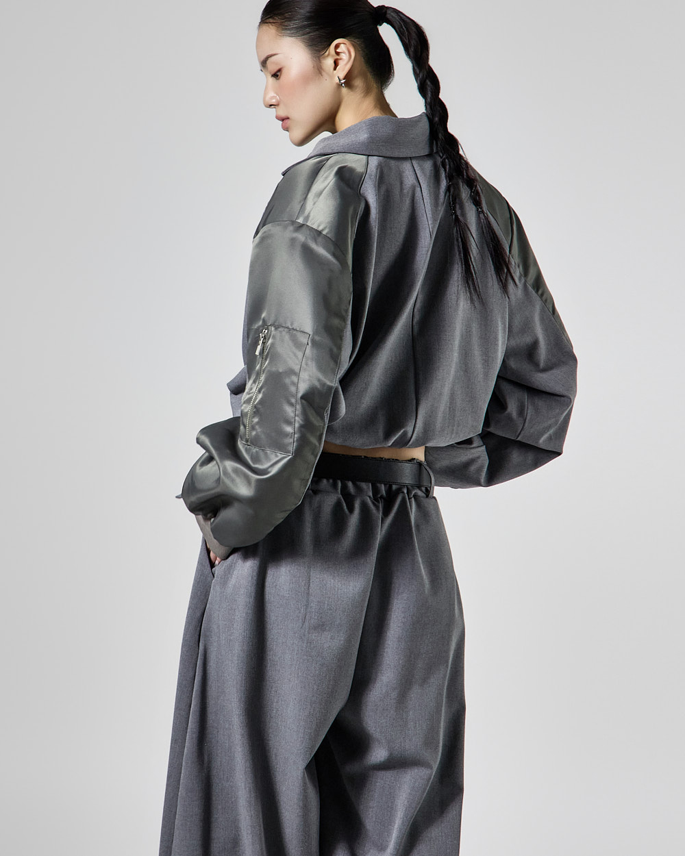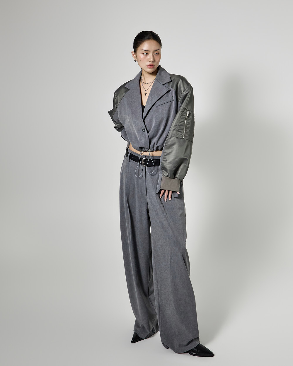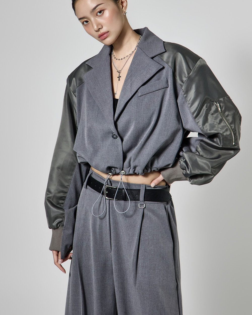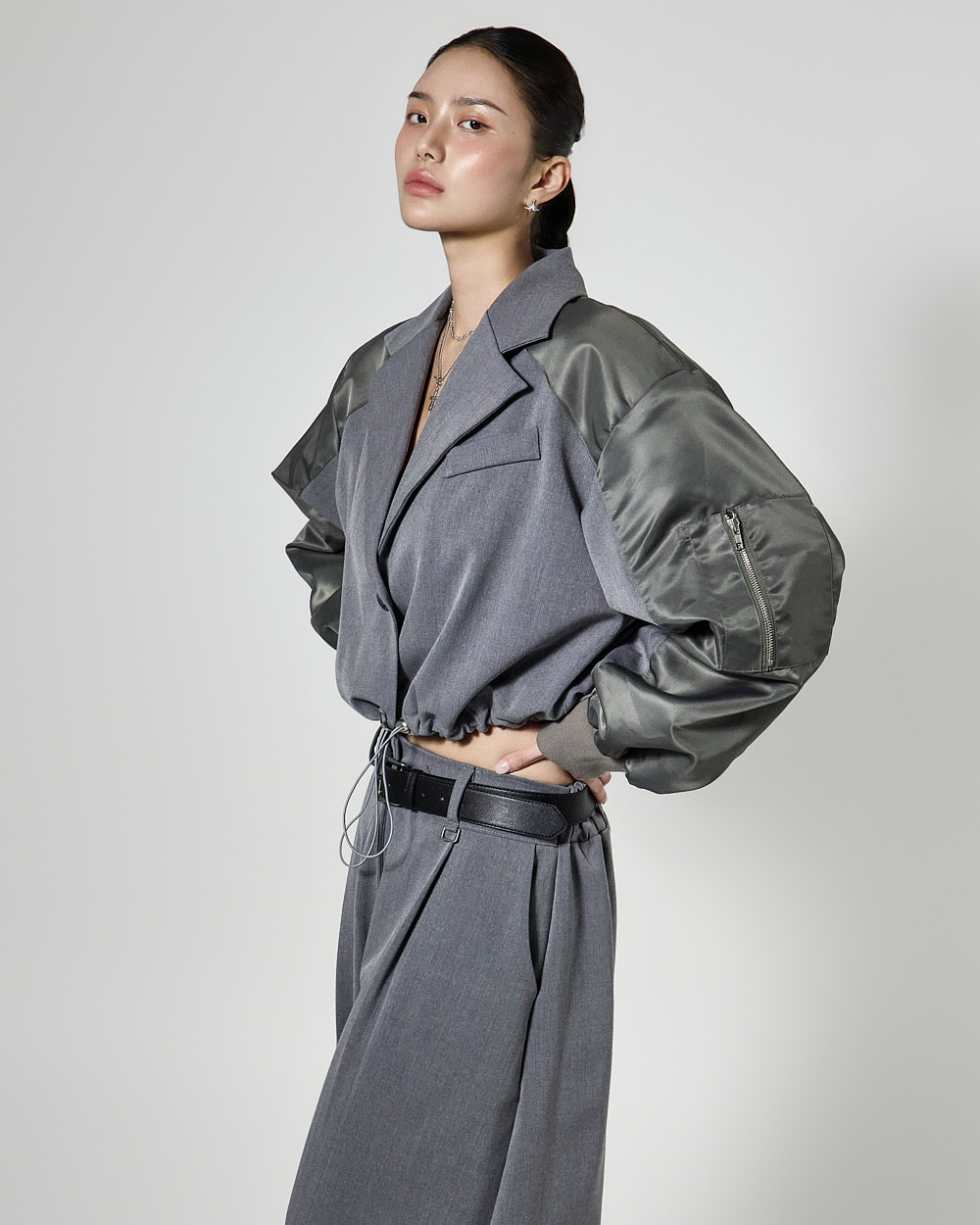 항공 블루종을 믹스한 크롭 자켓은