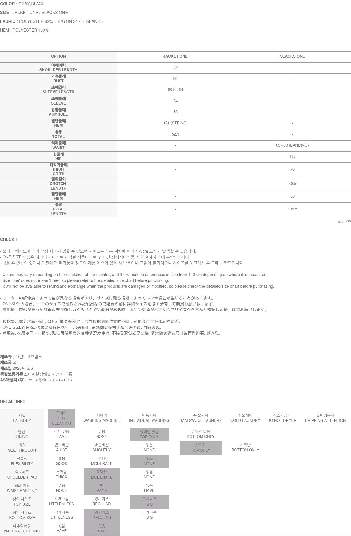 자켓, 슬랙스 모두 폴리에스테르,레이온,스판