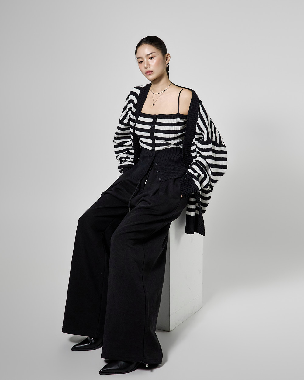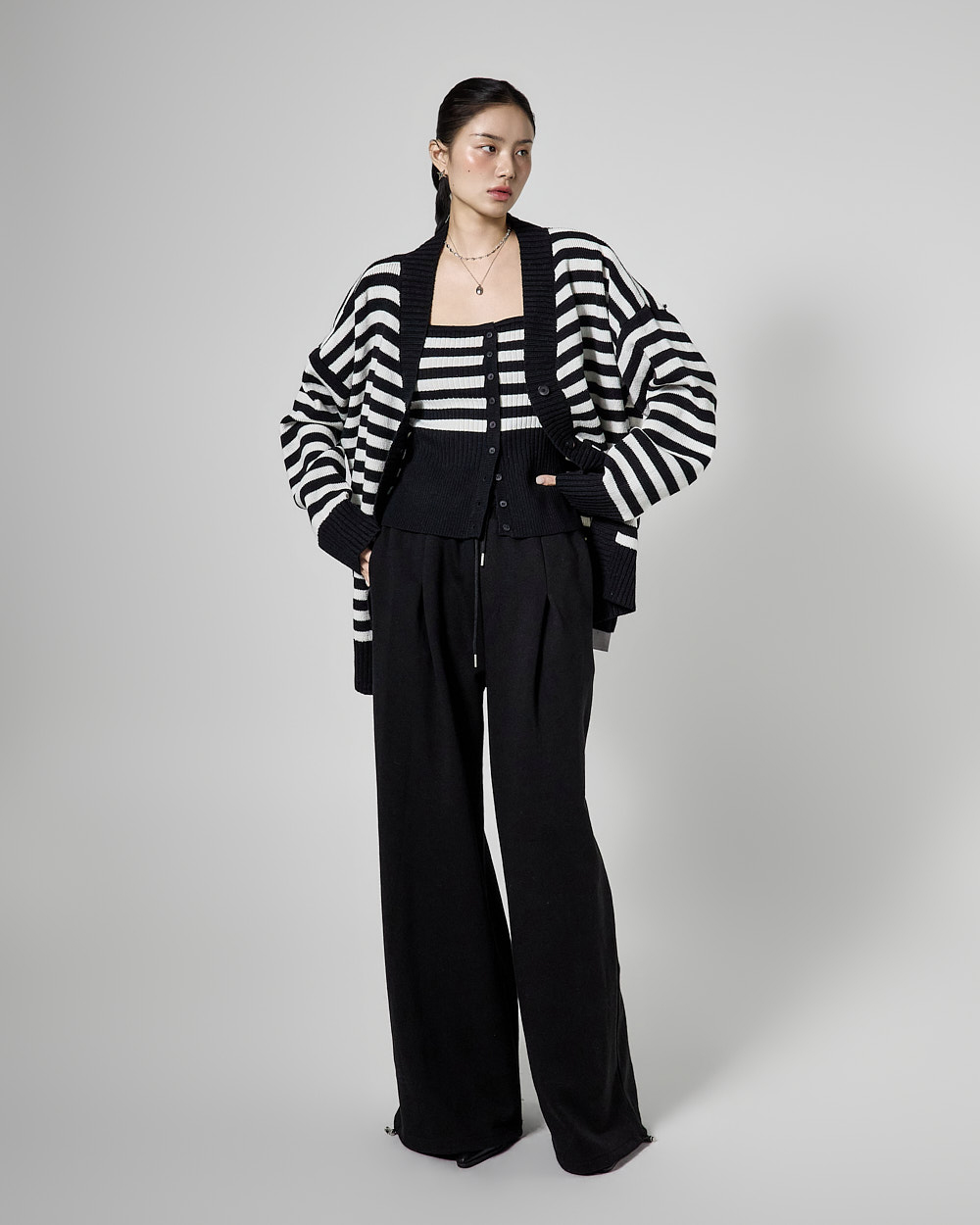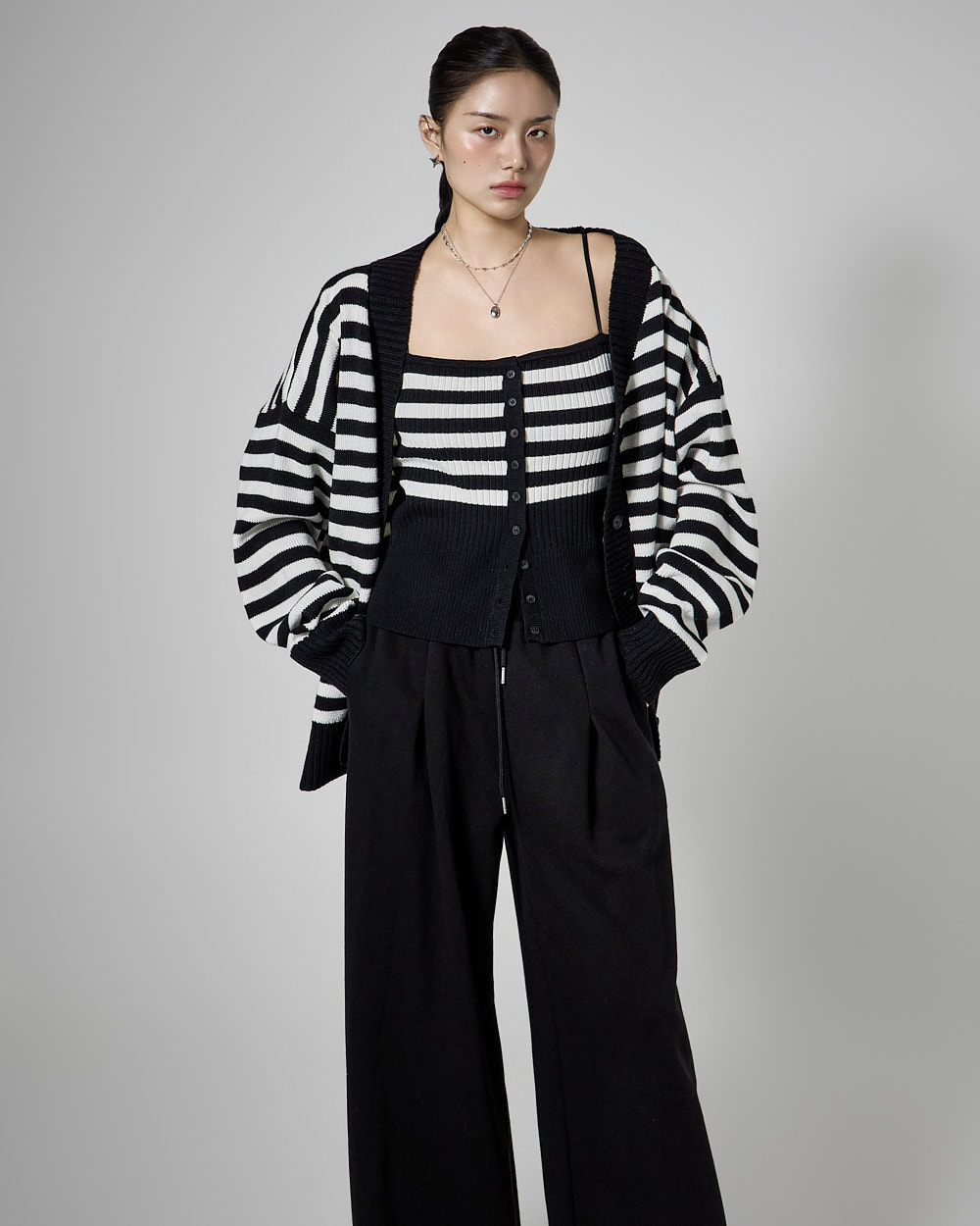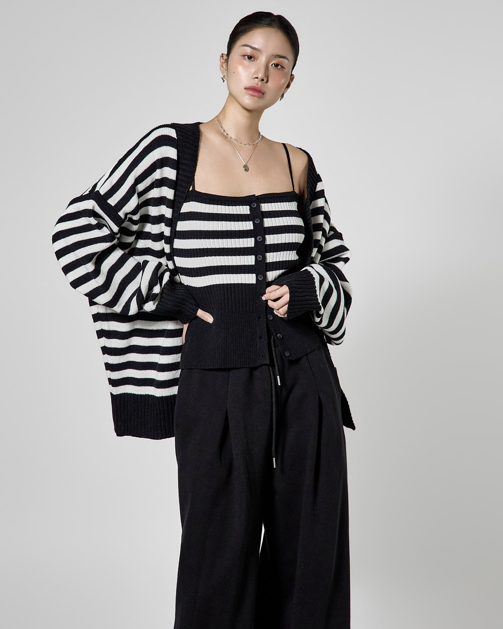 캐주얼한 무드의 슬리브리스 세트 가디건입니다.