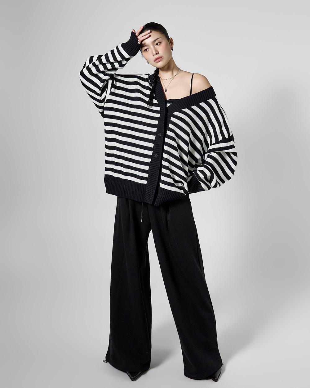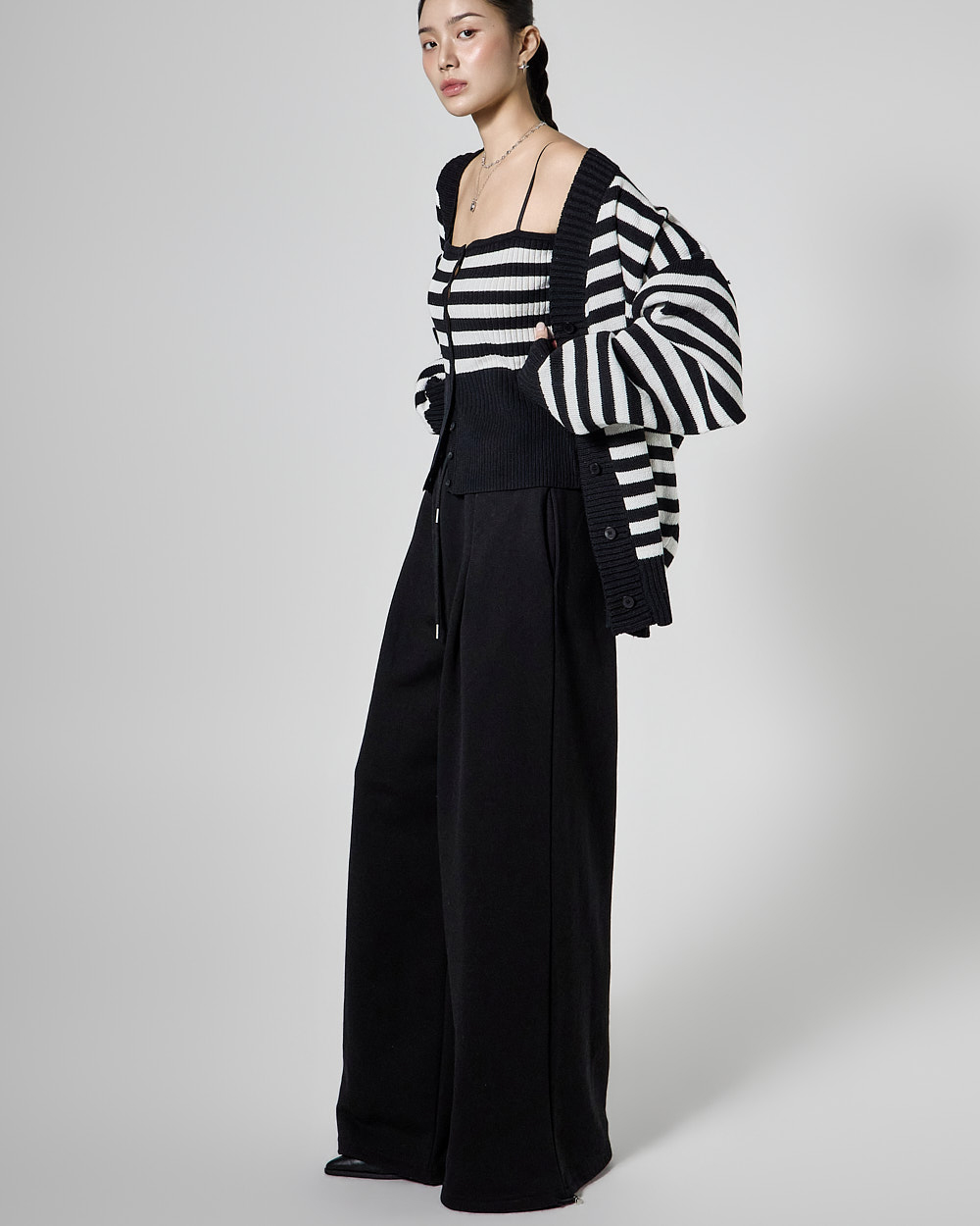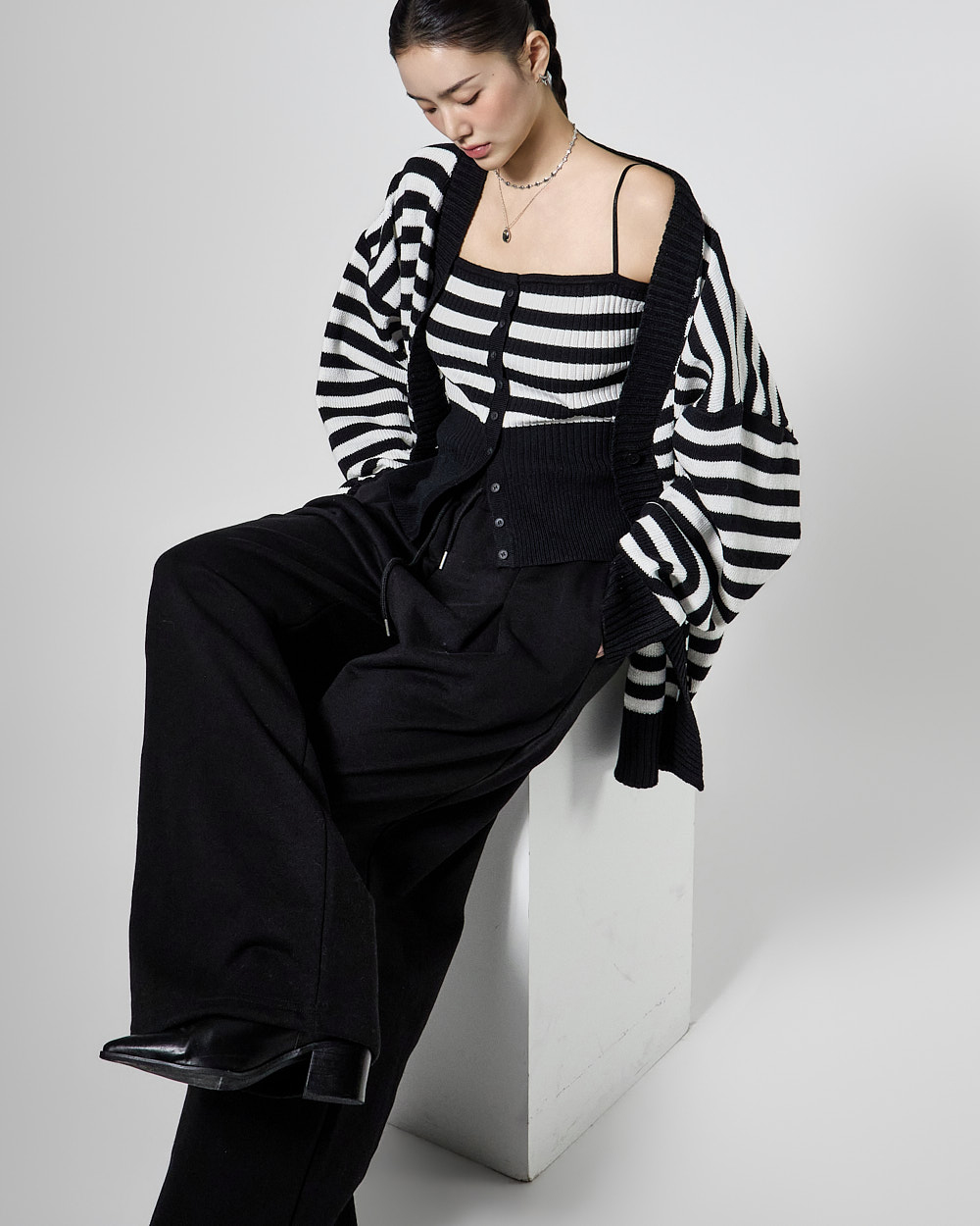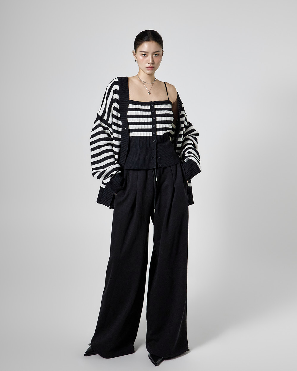 캐주얼한 무드의 슬리브리스 세트 가디건입니다.