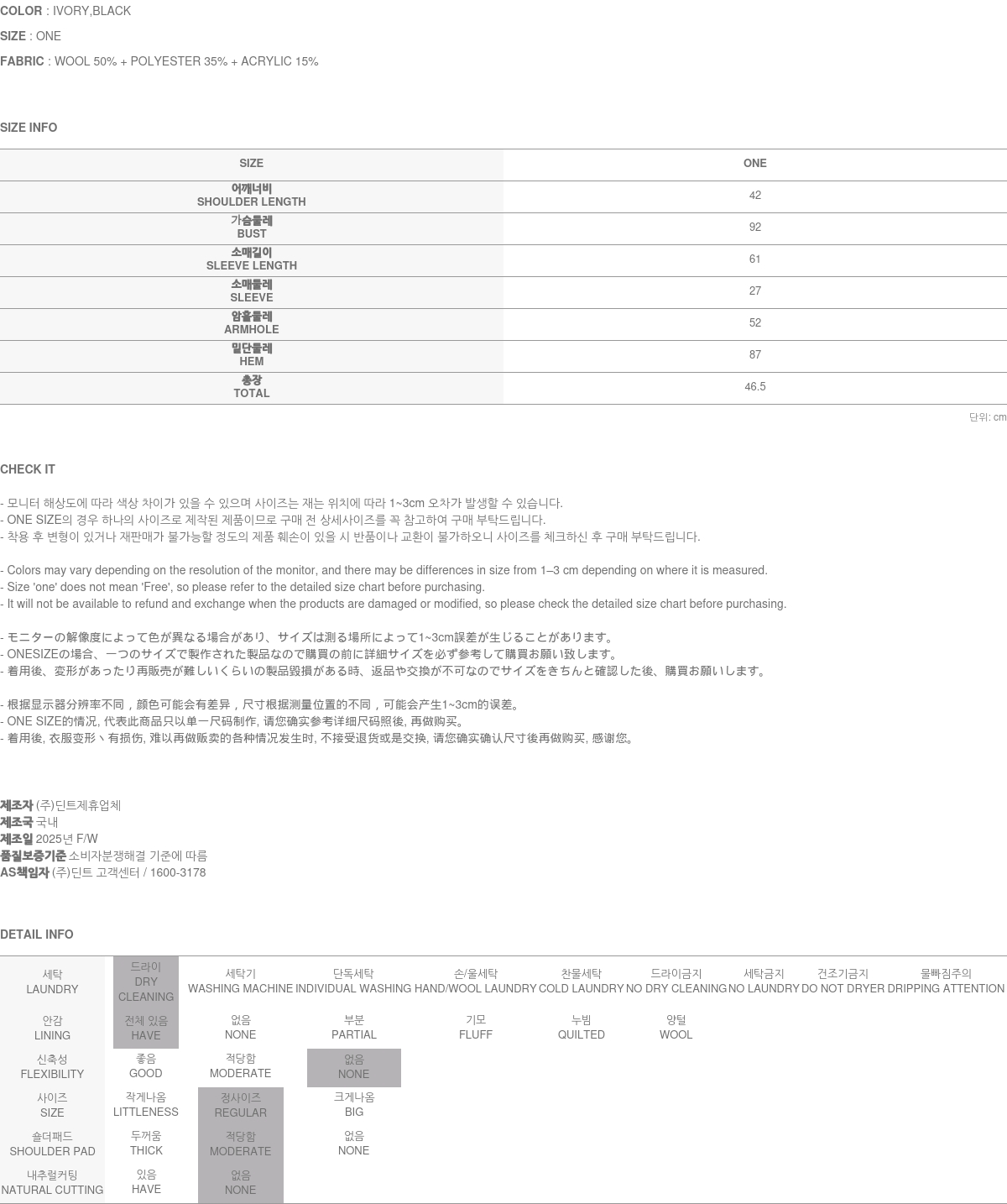 정확한 사이즈는 반드시 구매 전 상세 사이즈를 확인해 주시기 바랍니다.