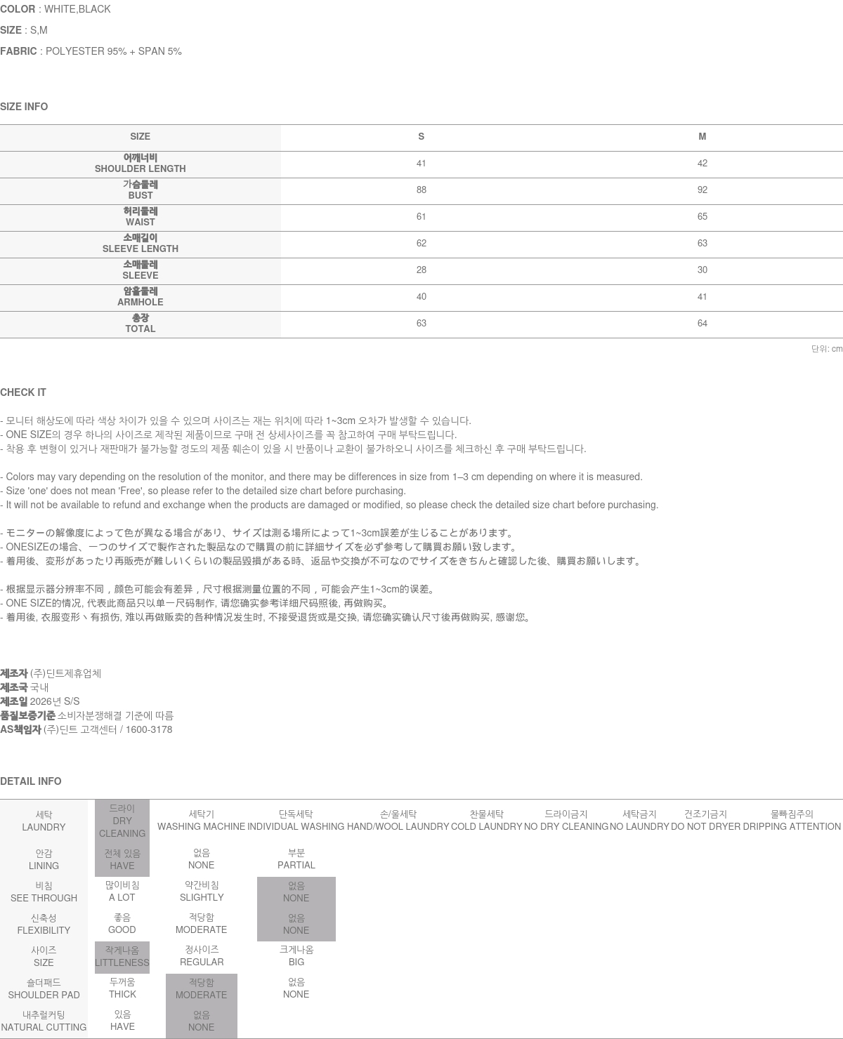 174CM 모델 S 사이즈, WHITE 컬러 착용하였습니다.